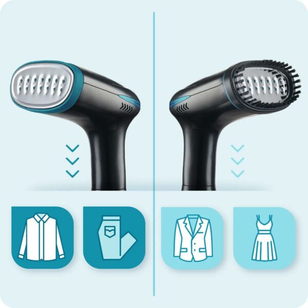 Pachetul include un accesoriu cu o perie pentru îndepărtarea prafului și a fibrelor și o pâlnie pentru turnarea ușoară a apei. Acest aburitor este ideal atât pentru uz casnic, cât și pentru călătorii, deoarece designul său compact și distribuția uniformă a aburului garantează rezultate profesionale, împrospătează țesăturile și elimină bacteriile și mirosurile neplăcute.