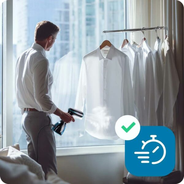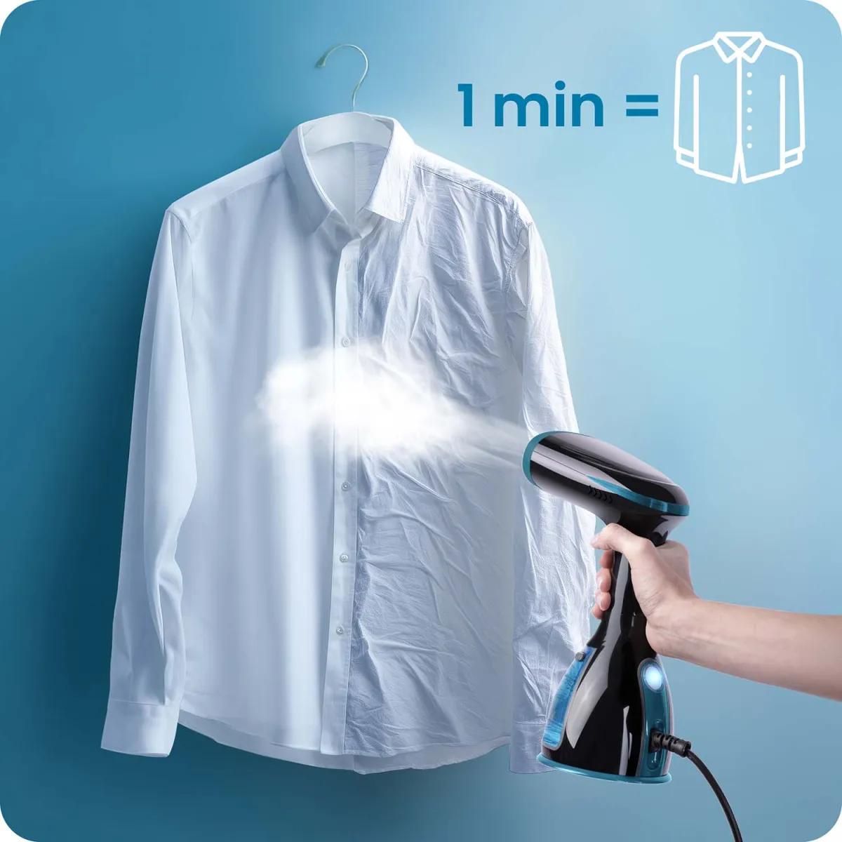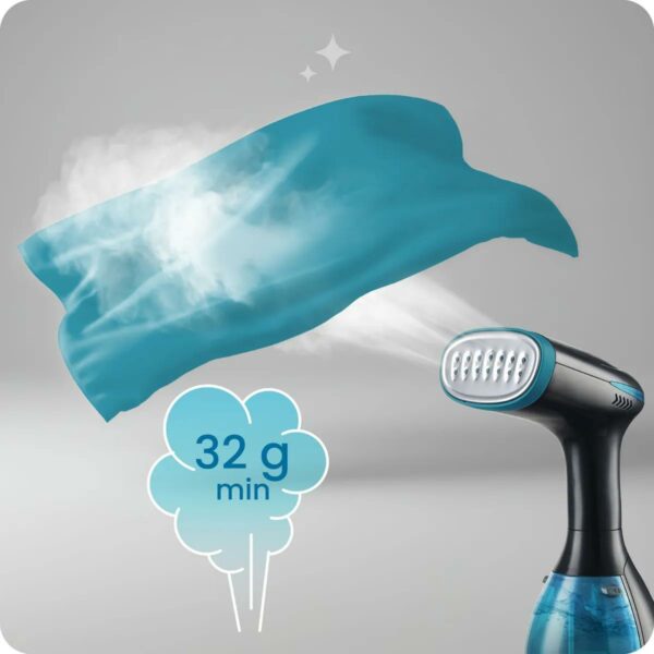 Datorită aburirii delicate, este potrivit și pentru materiale delicate, cum ar fi mătasea, bluzele sau perdelele. Rezervorul de apă de 280 ml permite câteva minute de funcționare continuă și poate fi deconectat și reumplut cu ușurință. Controlul este foarte simplu – un singur buton, completat de un indicator luminos de funcționare.
