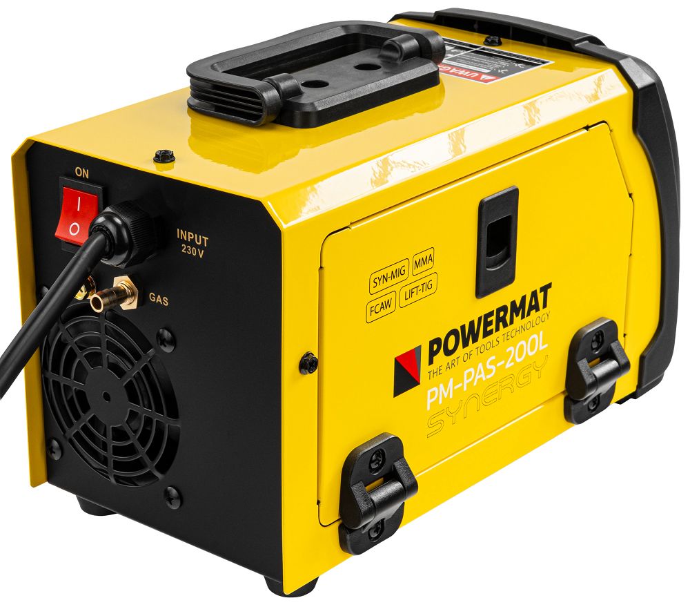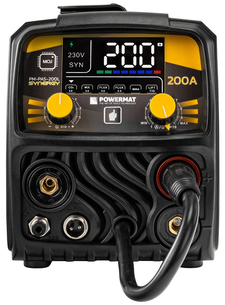 Aparatul de sudură cu invertor Migomat | PM-PAS-200L permite sudarea fiabilă și eficientă a diverselor materiale în atelier, la lucrări de asamblare și reparații. Aparatul vă permite să sudați diverse materiale în atelier și pe teren. Datorită tehnologiei synergy și IGBT, puteți seta parametrii mai ușor, puteți obține un arc stabil și suduri repetate, ceea ce scurtează timpul de lucru și crește controlul asupra procesului. IGBT stabilizează funcționarea și îmbunătățește controlul arcului. Funcția de impuls facilitează sudarea materialelor dificile.
