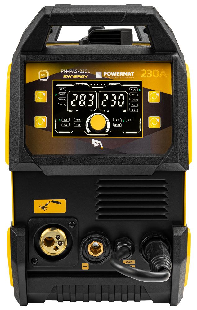 Aparatul de sudură cu invertor Migomat | PM-PAS-230L permite sudarea fiabilă și eficientă în diverse lucrări de atelier și asamblare. Aparatul de sudură permite îmbinarea oțelului, aluminiului și cuprului în atelier și pe teren. Datorită sinergiei și tehnologiei IGBT, puteți seta parametrii mai rapid, puteți obține un arc stabil și suduri repetabile, iar funcțiile puls și LCD sporesc controlul asupra procesului. Puteți suda cu sau fără gaz FLUX. Acest lucru vă oferă libertate atunci când lucrați în atelier și pe teren.