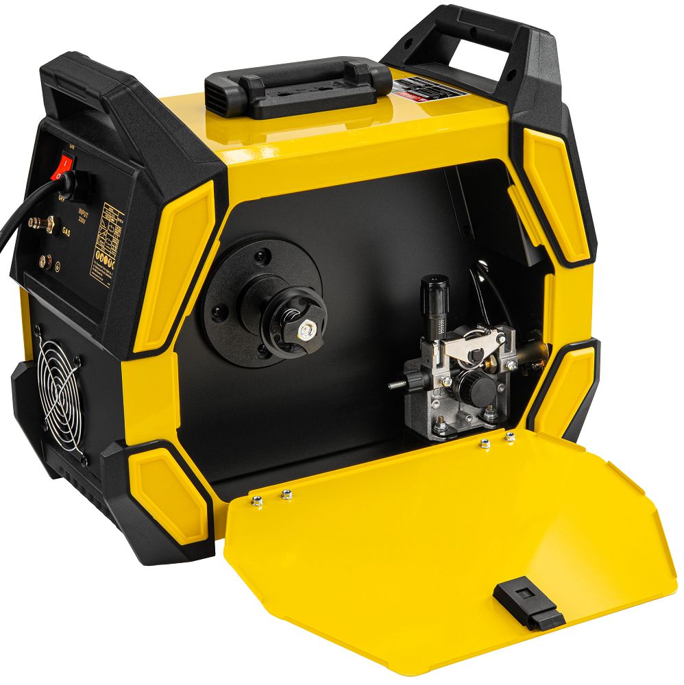 Aparatul de sudură oferă un curent maxim de sudare de 230 A, ceea ce vă permite să ajustați puterea la o gamă largă de lucrări – de la piese subțiri la materiale mai solicitante. Este echipat cu un alimentator de sârmă cu 2 role, care asigură o alimentare stabilă și uniformă a materialului în timpul lucrului. Dispozitivul este, de asemenea, echipat cu un conector EURO, care vă permite să conectați și să deconectați rapid suportul de sudură fără a fi nevoie să demontați capacul. Carcasa ușoară facilitează transportul dispozitivului. Îl puteți duce cu ușurință la service sau la lucru în afara atelierului.