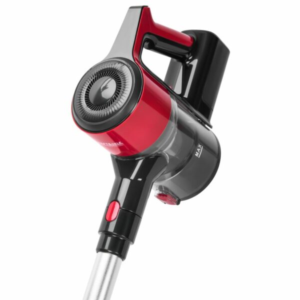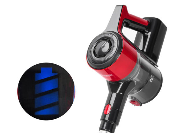 Panoul tactil cu afișaj LED arată modul de viteză curent, nivelul de încărcare al bateriei și nivelul de umplere al recipientului de praf, ceea ce sporește confortul în utilizare. Filtrul HEPA lavabil asigură un aer curat, iar suportul de perete permite depozitarea practică a aspiratorului.