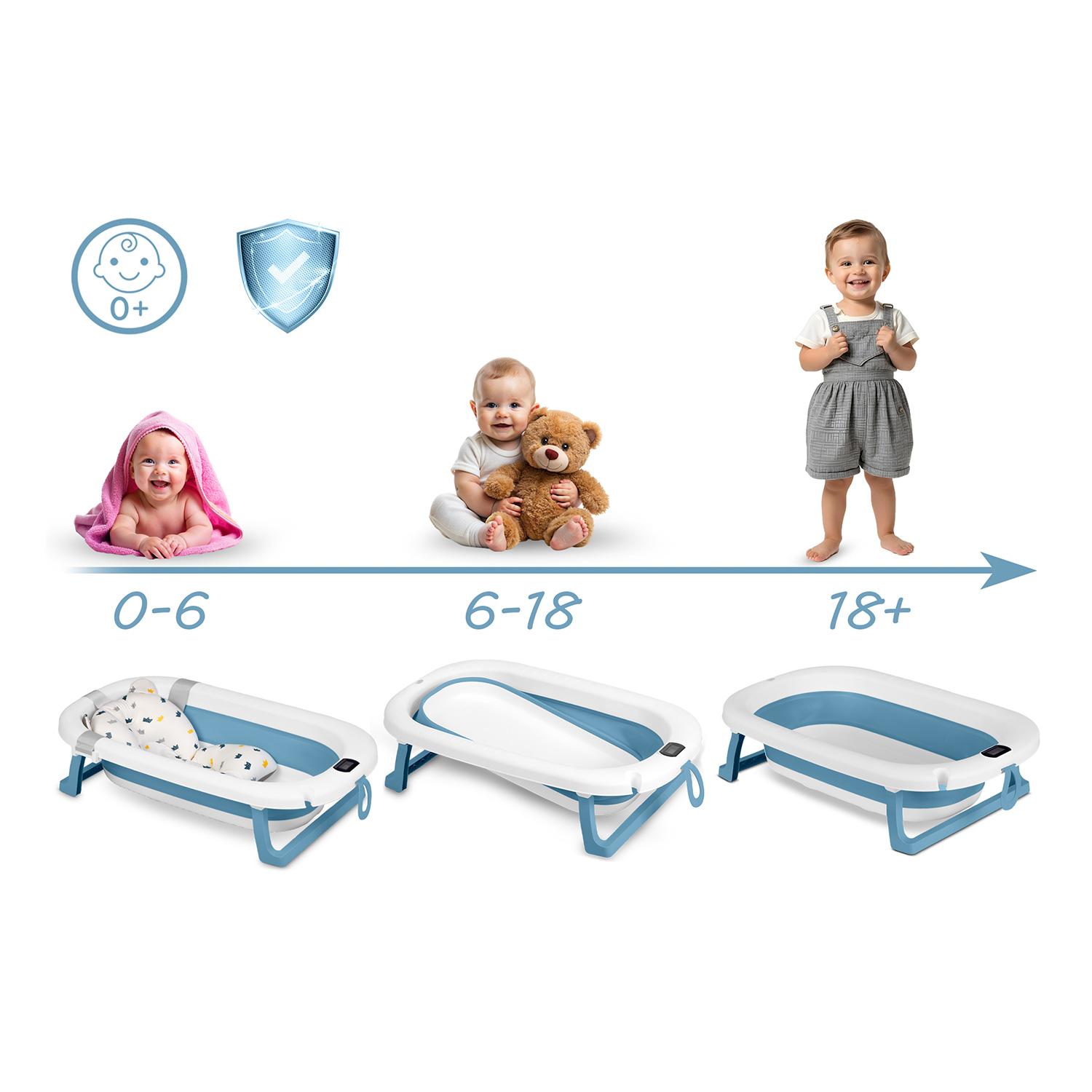 Cădiță pliabilă pentru bebeluși cu termometru RK-287 | albastru