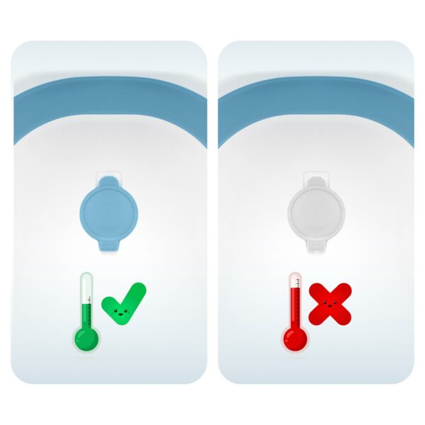 Cădița pliabilă pentru bebeluși cu termometru RK-287 | albastru oferă o baie sigură și confortabilă, putând fi pliată și depozitată chiar și într-un spațiu mai mic. Cădița este echipată cu un insert moale, modelat, care susține ușor capul și spatele copilului. Datorită celor trei mânere puternice, o puteți atașa în siguranță la marginile cădiței – fără alunecare, fără stres.