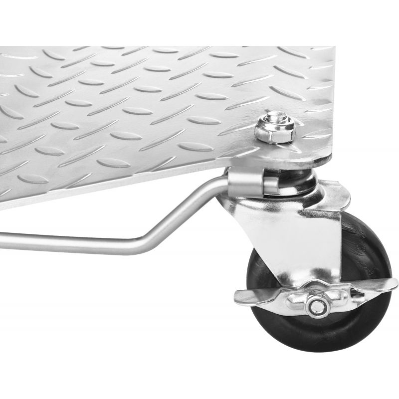 Cărucioarele transport platformă, 2 buc, 680kg | KD12681 sunt platforme solide și durabile, concepute pentru mutarea încărcăturilor grele în ateliere, depozite și hale de producție. Setul include două piese pentru susținere stabilă și transport sigur al obiectelor mari și grele. Fiecare rolă poate transporta până la 680 kg, permițând transportul încărcăturilor foarte grele. Forma părții superioare reduce riscul de alunecare a mărfurilor și crește siguranța în muncă. Tabla metalică durabilă cu suprafață antiderapantă îmbunătățește aderența și stabilitatea încărcăturii. Cărucioarele au 4 roți pivotante, dintre care două sunt blocabile, care permit manevrarea ușoară și plasarea stabilă. Un mâner pliabil robust pe lateral facilitează transportul și depozitarea.