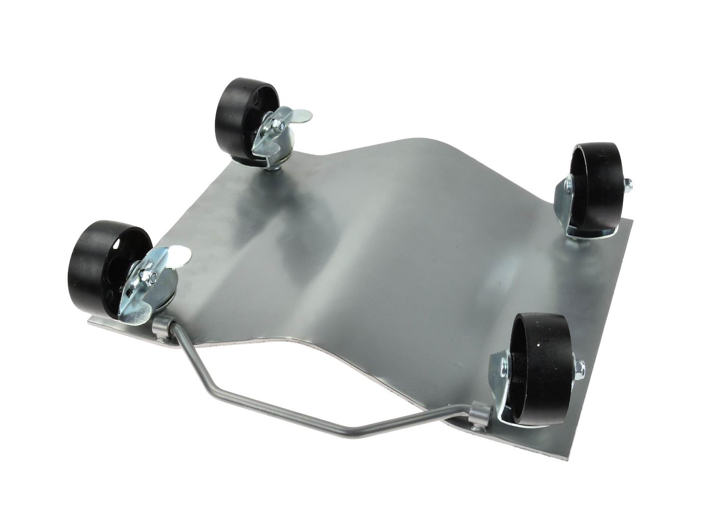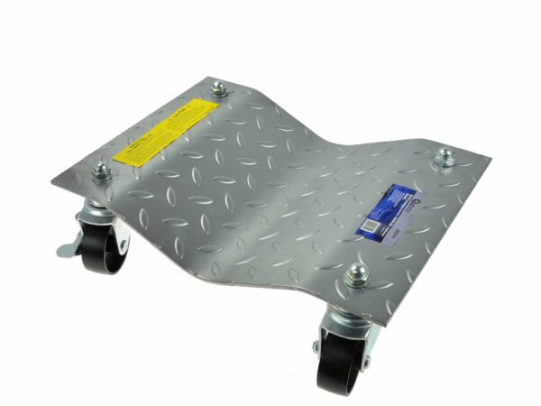 Cărucior auto cu roți, 680 kg, 2 buc | GEKO este potrivit pentru orice service auto, fiind potrivit pentru mutarea vehiculelor într-un atelier sau garaj. Fiecare cărucior are o carcasă din oțel, o platformă cu tratament antiderapant și patru roți pivotante cu un diametru de 76 mm, două dintre acestea fiind echipate cu un mecanism de frână de parcare, care asigură stabilitatea în poziție verticală.