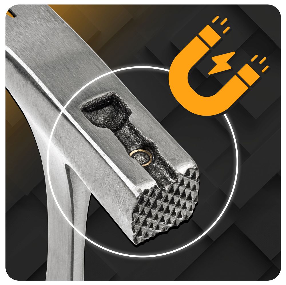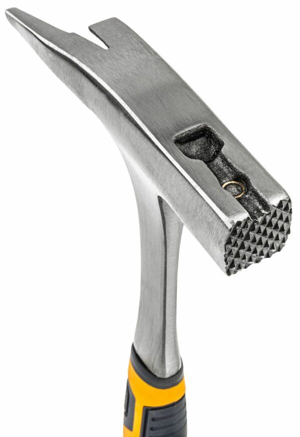 Cu o greutate de 960 g și o lungime de 325 mm, ciocanul este perfect echilibrat. Acești parametri permit o muncă sigură și precisă, ceea ce se reflectă în confortul și eficiența lucrului în diverse condiții. Ciocanul are, de asemenea, o canelură magnetică ce vă permite să pre-setați cuiul fără a utiliza a doua mână. Această soluție accelerează lucrul, crește precizia loviturilor și îmbunătățește siguranța, în special atunci când lucrați la înălțime sau în locuri greu accesibile.