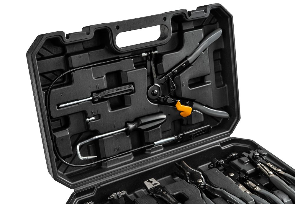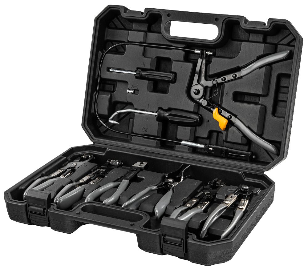 Setul include unelte pentru cleme cu arc, CLIC/CLIC-R, cleme Oetiker și din sârmă, astfel încât nu trebuie să cumpărați mai multe seturi. Puteți slăbi, strânge și reinstala clemele reutilizabile și de unică folosință. Acest lucru vă oferă flexibilitatea de a lucra cu diferite mărci de mașini, inclusiv modele europene populare. Un set va face față majorității clemelor pe care le veți întâlni în compartimentul motor.