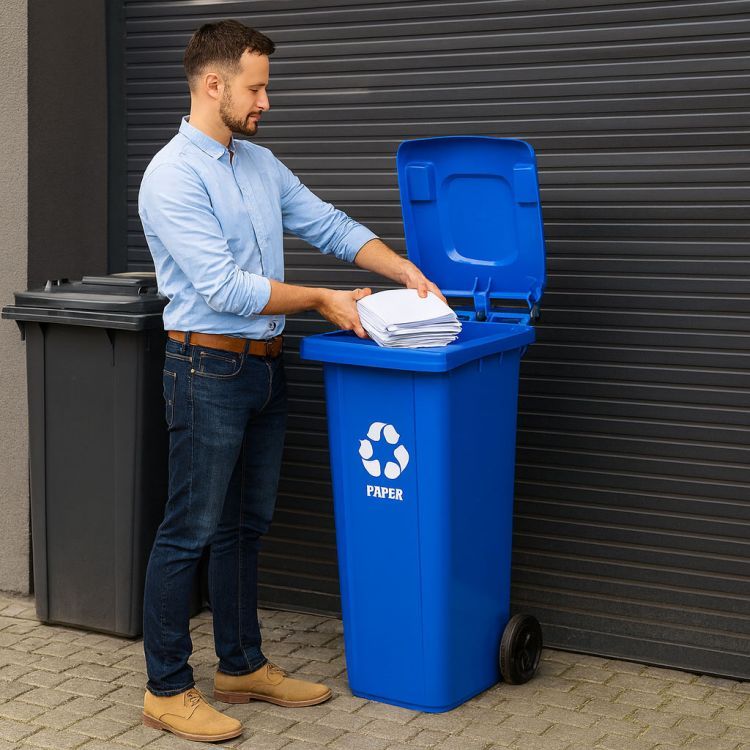 Datorită roților de cauciuc și mânerului ergonomic, coșul este ușor de mutat chiar și pe teren accidentat. Designul respectă standardul PN-EN 840, care permite manipularea cu vehicule municipale standard. Culoarea albastră indică faptul că este destinat hârtiei, în conformitate cu sistemul de sortare a deșeurilor. Dimensiunile compacte permit amplasarea în spațiu limitat, iar volumul de 120 l permite o utilizare mai lungă, fără a fi nevoie de goliri frecvente.