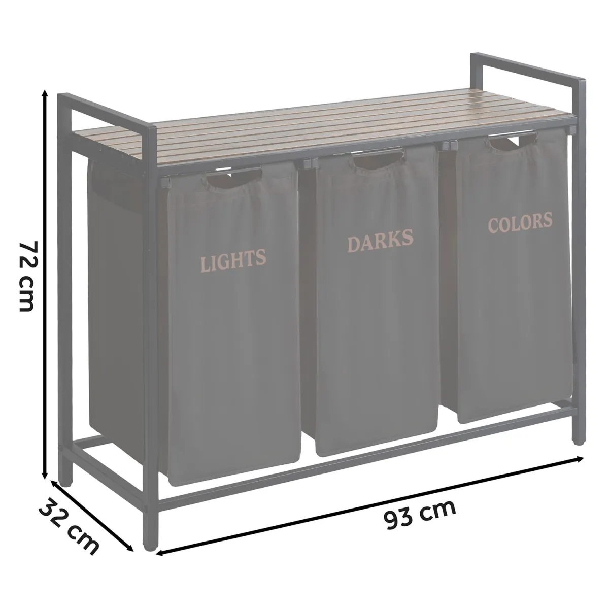 Coș de rufe cu trei compartimente și cadru, 120L, negru | Massido