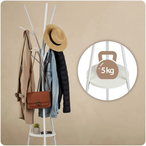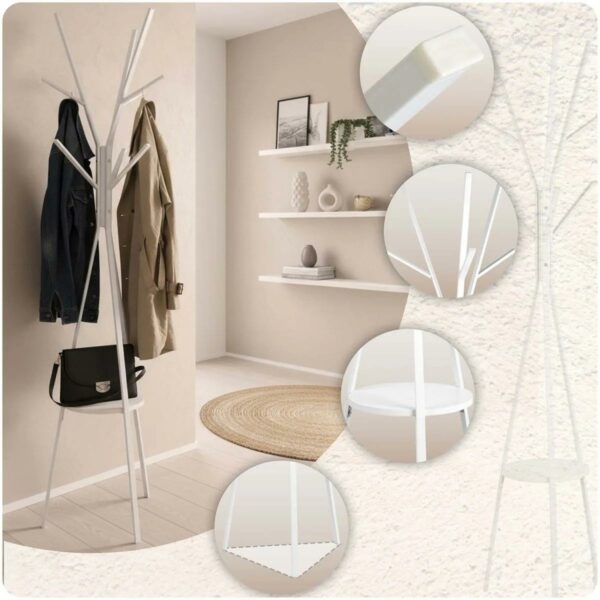 Cuierul vertical MS-869, alb | Massido oferă o soluție practică pentru agățarea hainelor, cu un raft suplimentar pentru accesorii. Cuierul oferă o soluție practică pentru organizarea unui dulap sau a unui hol de la intrare – are mai multe cârlige pentru paltoane, jachete, genți sau șepci și este, de asemenea, echipat cu un raft pentru obiecte mici, cum ar fi mănuși, pălării sau decorațiuni. Construcția sa solidă asigură stabilitate, în timp ce designul simplu este ușor de integrat în diverse stiluri de interior.