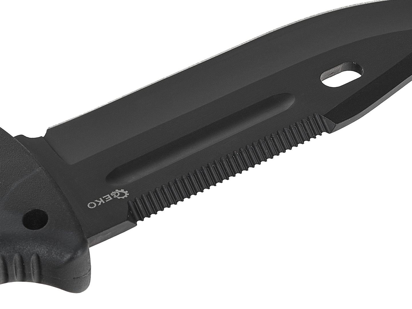 Mânerul ergonomic, realizat dintr-o combinație de PP și TPR, oferă o prindere sigură și stabilă, care nu alunecă nici măcar în condiții de umiditate, ceea ce crește semnificativ confortul și siguranța la locul de muncă. Pachetul include o teacă practică pentru purtarea în siguranță a cuțitului, o busolă pentru o mai bună orientare pe teren, o cremene pentru aprinderea focului și un ascuțitor pentru întreținerea lamei.