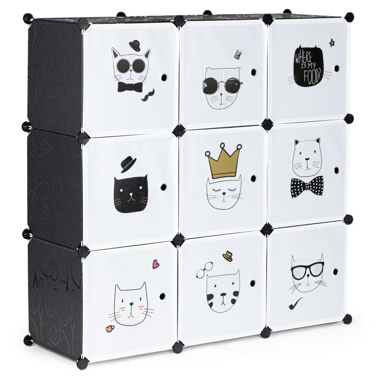 Dulap pentru copii, 9 rafturi, alb-negru | ModernHome