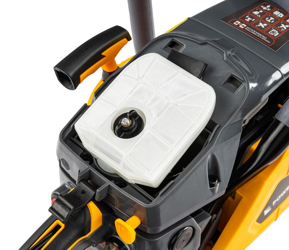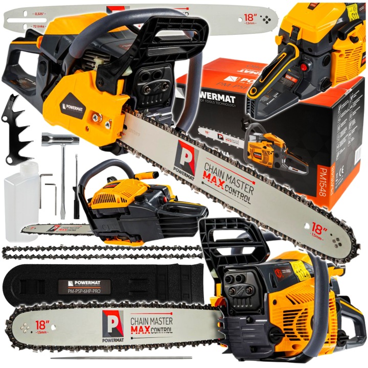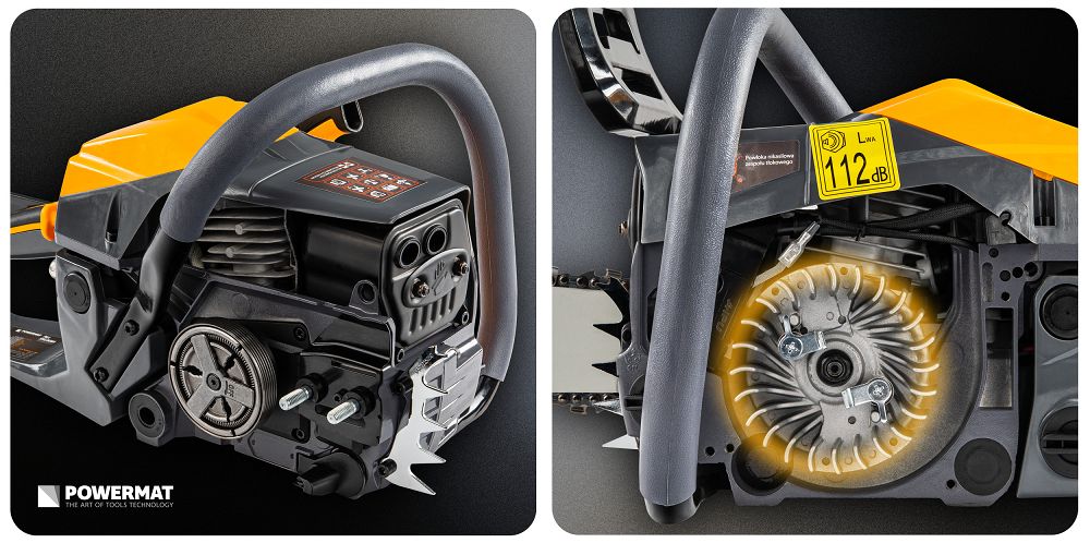 Fierăstrăul pe benzină, 6KM | PM-PSP-6HP-PRO permite tăierea eficientă a lemnului, crengilor și pregătirea lemnelor de foc atunci când lucrați în grădină sau pe șantiere. Este conceput pentru tăierea copacilor, tăierea crengilor și pregătirea lemnului pentru combustibil în grădină, pe proprietate și în timpul lucrărilor de construcții. Datorită motorului puternic și a șinei de ghidare lungi, puteți lucra mai mult mai rapid și puteți obține precizie de tăiere, stabilitate a ghidării și confort chiar și în timpul utilizării intensive.