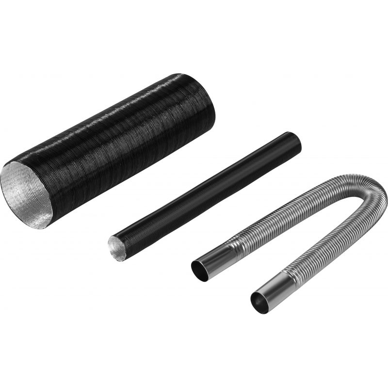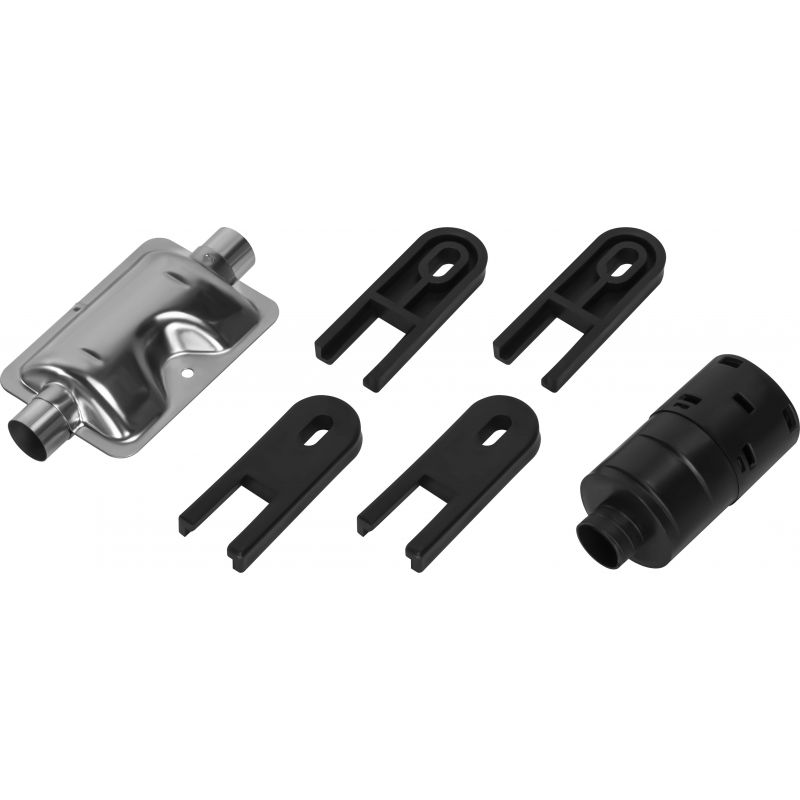 Telecomanda inclusă permite o operare convenabilă, iar diverse tipuri de țevi (inclusiv metalice flexibile și drepte) vă permit să adaptați instalația la condițiile de utilizare. Țevile, adaptorul de rețea, amortizorul și elementele de montare completează pachetul, permițându-vă să pregătiți rapid dispozitivul pentru funcționare.