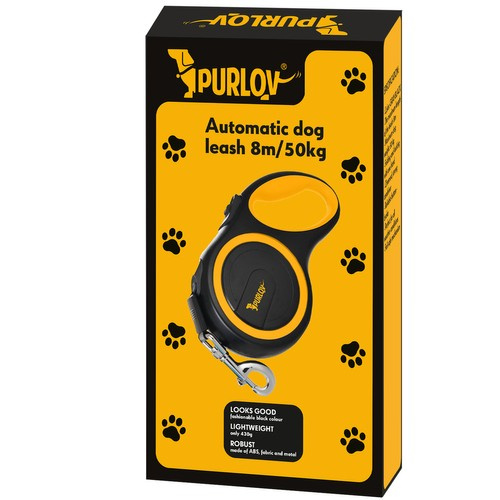 Lesă pentru câini, 8m, până la 50kg, negru-galben | Purlov