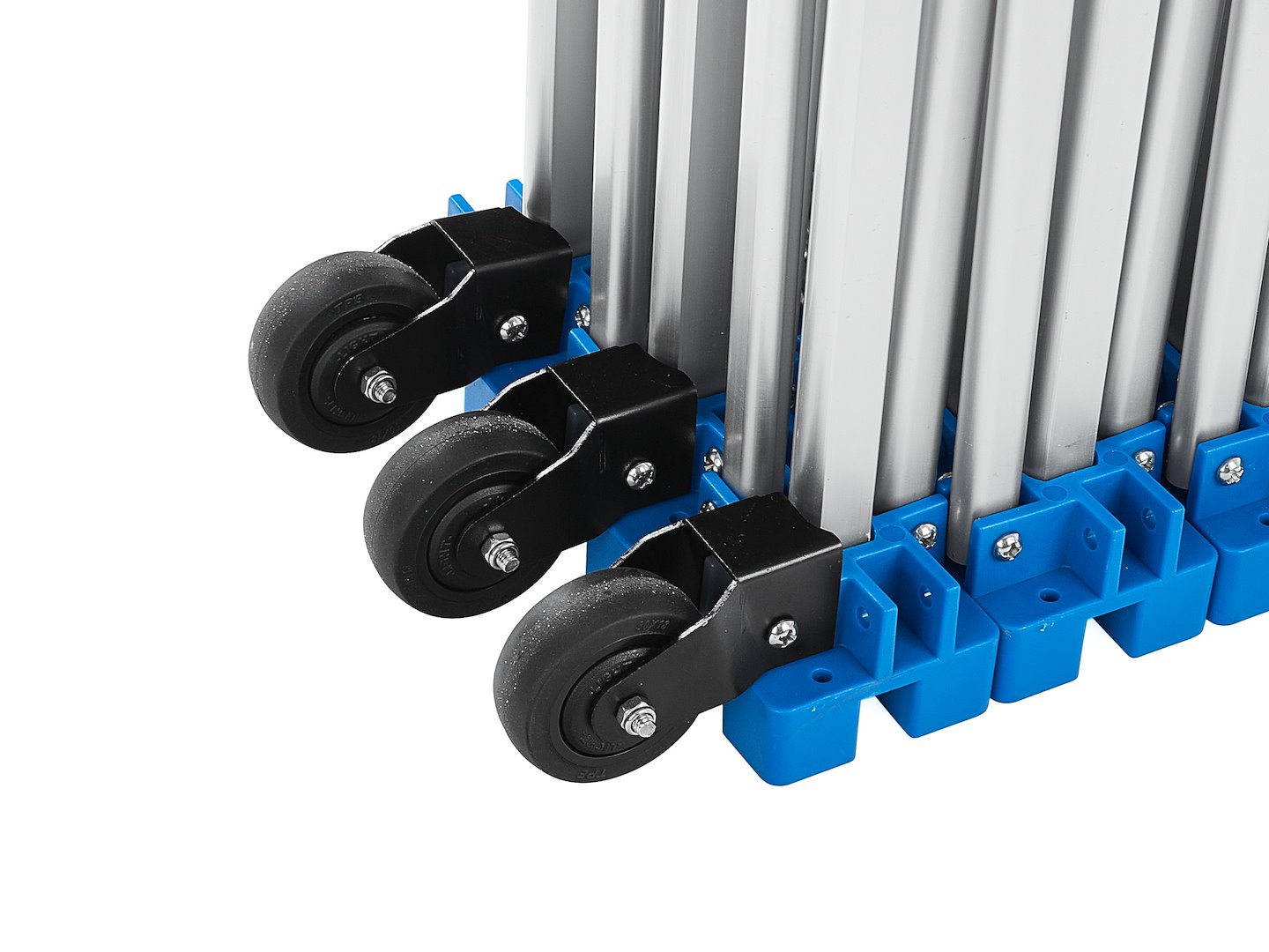 Avantajul îl reprezintă cele 3 roți de transport, care permit mișcarea ușoară a mesei atunci când este pliată. Masa are un design pliabil, așa că ocupă foarte puțin spațiu atunci când este pliată. Prin urmare, este ideală și pentru transportul între proiecte sau pentru depozitare în atelier. Pachetul include și o husă textilă care protejează masa de praf și deteriorări în timpul transportului și depozitării.