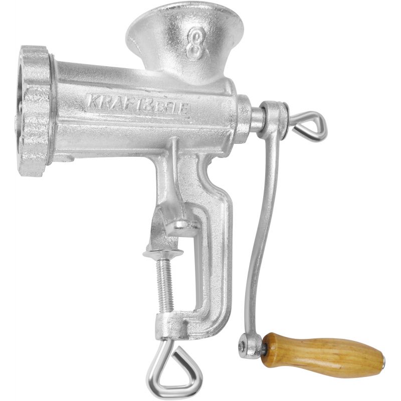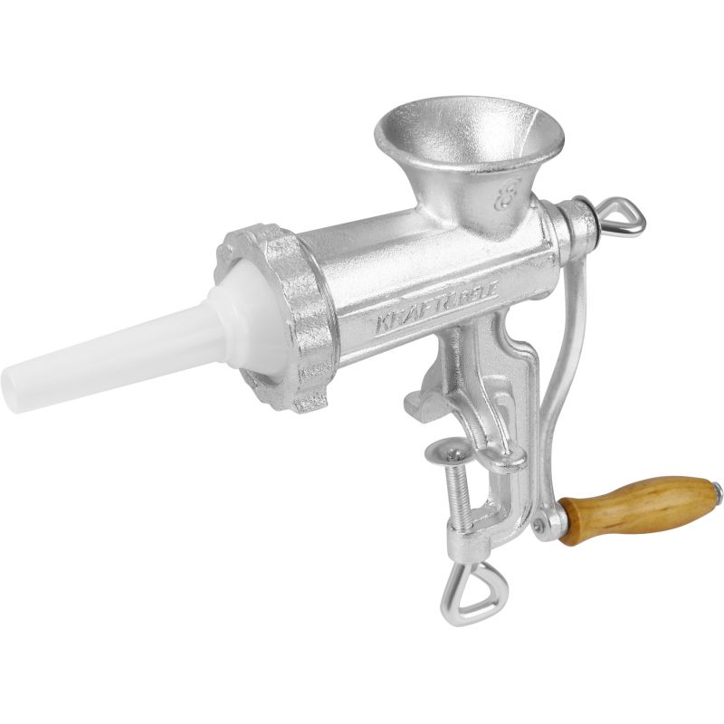 Mașina de tocat carne manuală, mărimea 8 | KD4191 este un instrument fiabil și practic, conceput pentru prepararea cărnii proaspete, a umpluturilor și a cârnaților de casă. Datorită designului său clasic și independenței față de electricitate, se va dovedi în fiecare bucătărie. Corpul din aliaj de fontă galvanizată asigură durabilitate și rezistență la deteriorare, iar manivela confortabilă cu mâner din lemn garantează confort în utilizare.