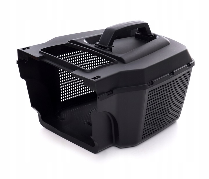 - Aparatul este echipat cu un coș de colectare a ierbii de 30 de litri. Designul coșului a fost atent gândit, coșul fiind fabricat din plastic rezistent. Mânerul confortabil facilitează golirea
