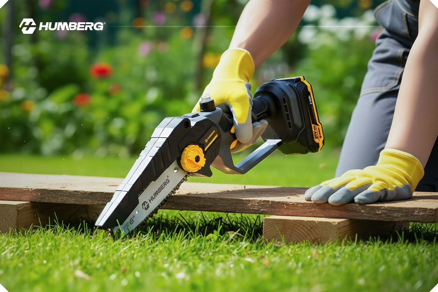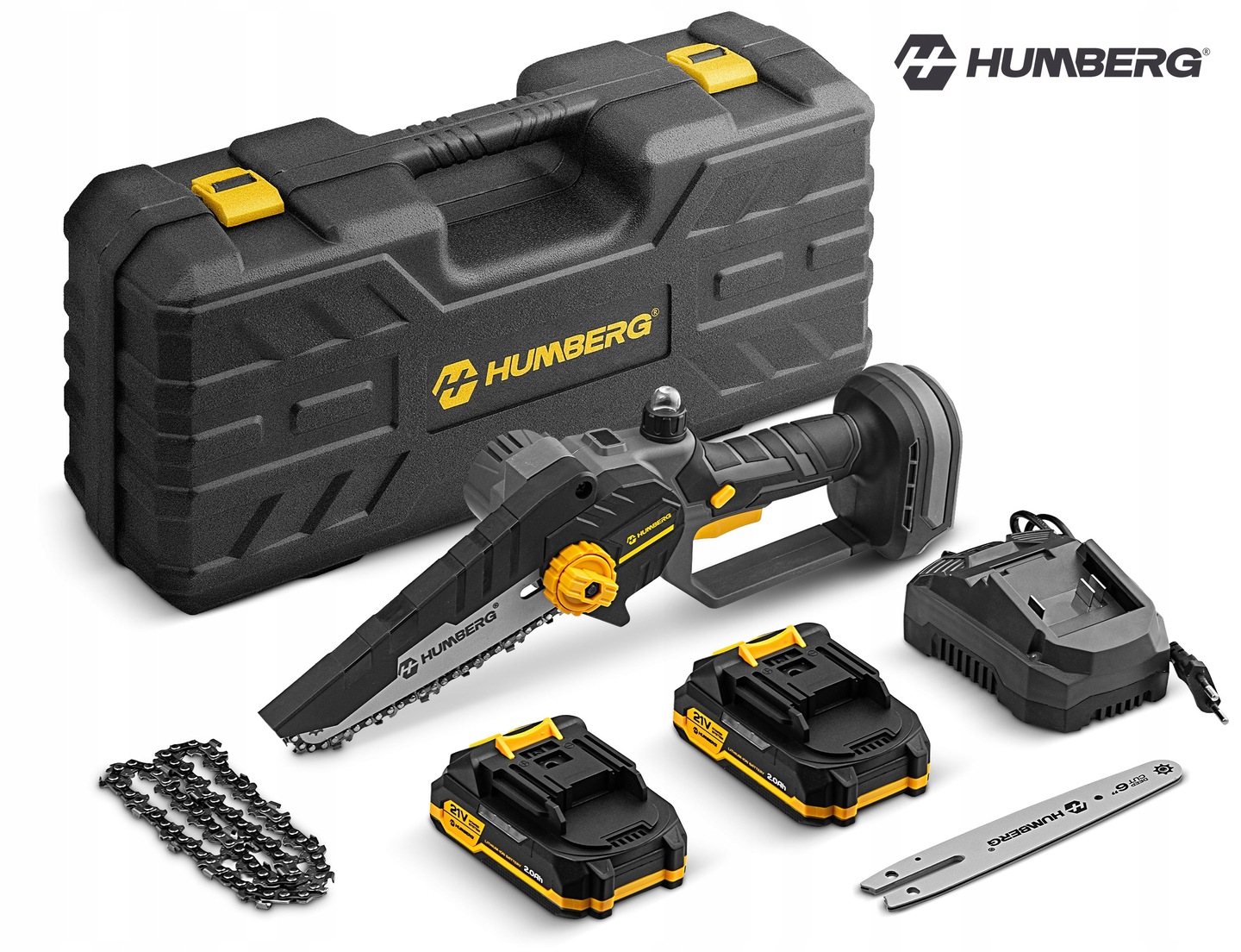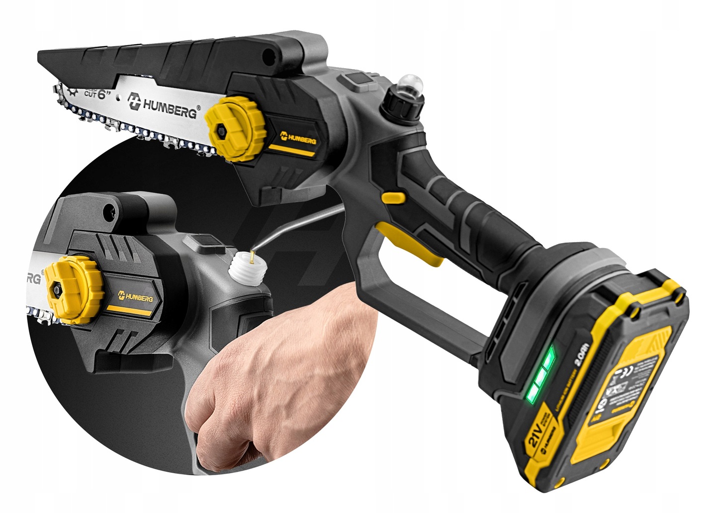 Mini drujbă cu baterie HM-421, 420W | Humberg este o unealtă practică și mobilă pentru tăierea ușoară a lemnului și întreținerea grădinii fără cabluri. Datorită designului său ușor și echilibrat, este confortabil de ținut și controlat chiar și în timpul lucrărilor mai lungi, ceea ce îl face o soluție ideală pentru utilizarea acasă, fără a fi nevoie de acces la o priză de curent. Acționarea cu baterie oferă mobilitate și flexibilitate, în timp ce caracteristicile de siguranță sporesc siguranța la locul de muncă.