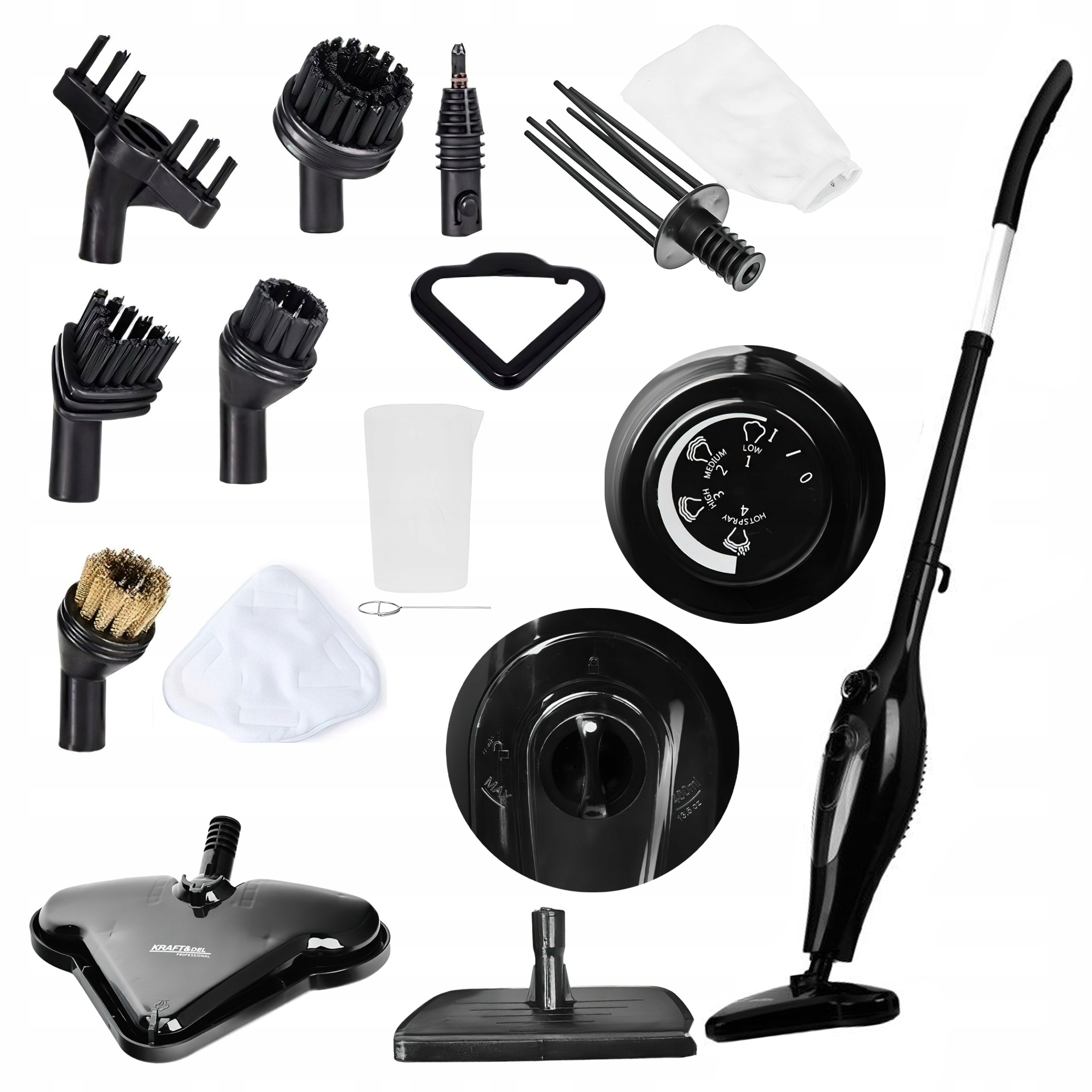 Mop cu abur, 12 în 1, negru | KD665 este un dispozitiv multifuncțional care asigură curățarea temeinică a diferitelor suprafețe fără utilizarea de substanțe chimice. Jetul de abur generat de acest mop modern curăță simultan suprafețele și elimină orice bacterie. Este mult mai eficient decât metodele tradiționale de curățare. Important este că apa plată este suficientă pentru a acționa mopul, așa că evitați să folosiți substanțe chimice.