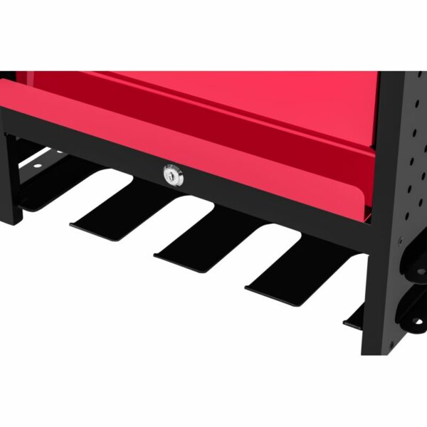 Construcția solidă din materiale durabile garantează o durată lungă de viață a produsului. Prelucrarea de precizie asigură stabilitatea și siguranța sculelor depozitate chiar și în cazul utilizării zilnice intensive. Trei niveluri practice oferă suficient spațiu pentru a depozita diferite tipuri de scule și accesorii. Datorită designului pe mai multe niveluri, vă puteți sorta cu ușurință echipamentul după tip sau dimensiune, ceea ce facilitează munca de zi cu zi și economisește timp.
