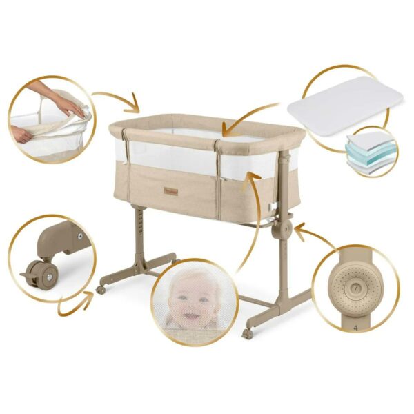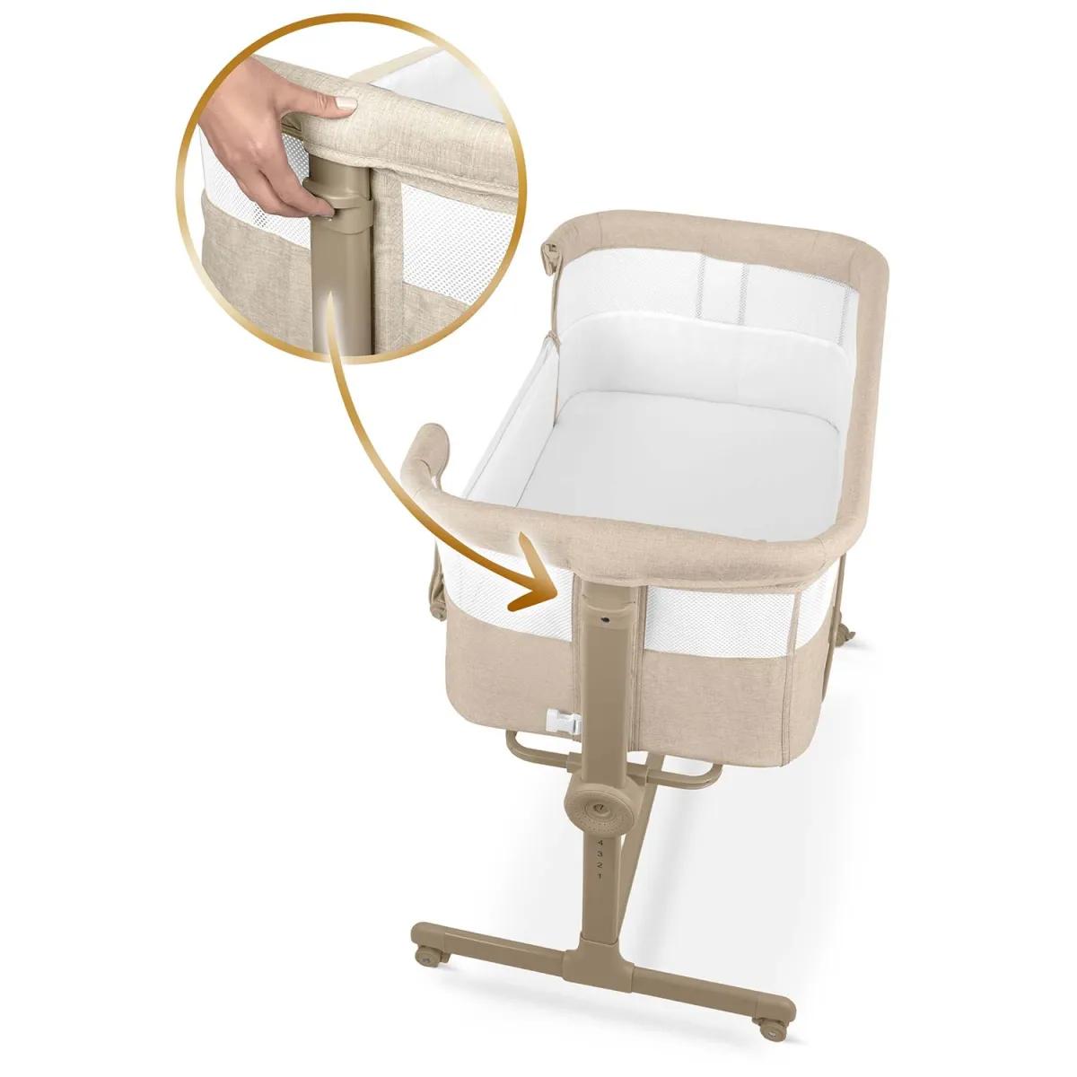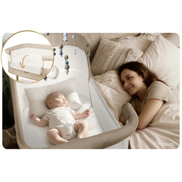 Pătuțul de călătorie pentru copii NK-243, pliabil, bej | Nukido cu o porțiune retractabilă oferă o soluție practică pentru părinți și bebeluși aflați în mișcare. A fost conceput pentru a fi ușor și pliabil, ceea ce îl face ușor de manevrat și transportat în timpul călătoriilor. Înălțimea poate fi reglată în 7 trepte, independent de fiecare parte, ceea ce ajută la adaptarea pătuțului la înălțimea saltelei dumneavoastră.