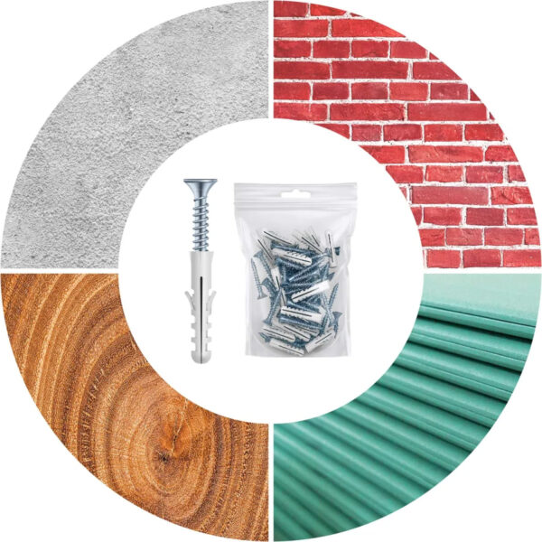 Setul include dibluri ideale pentru montarea pe diverse suprafețe, cum ar fi: