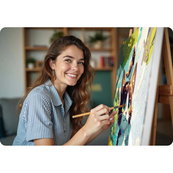 Pictați simplu, pas cu pas. Completați căsuțele marcate cu culoarea potrivită, începând cu zone mai mari și apoi trecând la detalii. Treptat, veți vedea cum lucrarea dvs. prinde contur și culori. Urmați doar numerele și restul se va face de la sine! Pictura după numere este potrivită pentru cupluri, frați sau familii întregi. Pe scurt, este o modalitate ideală de a petrece timpul împreună.