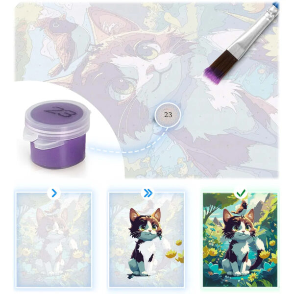 Pictură după numere, 40x50cm, pisoi | Massido este un set care vă permite să vă relaxați în timp ce completați căsuțele cu culori și vă creați propria operă de artă. Modelul vesel și colorat este o alegere excelentă atât pentru artiștii mari, cât și pentru cei mici care doresc să descopere bucuria picturii. Ideal pentru a petrece timp creativ cu familia și a crea o operă de artă unică, plină de culori!