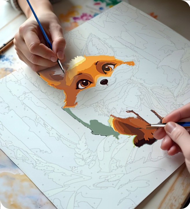 Pictură după numere, 40x50cm, vulpe | Massido este un set care vă permite să vă relaxați în timp ce completați căsuțele cu culori și vă creați propria operă de artă. Modelul vesel și colorat este o alegere excelentă atât pentru artiștii mari, cât și pentru cei mici care doresc să descopere bucuria picturii. Ideal pentru a petrece timp creativ cu familia și a crea o operă de artă unică, plină de culori!