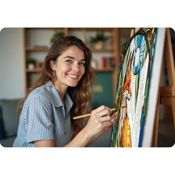 Pictați simplu, pas cu pas. Completați căsuțele marcate cu culoarea potrivită, începând cu zone mai mari și apoi trecând la detalii. Treptat, veți vedea cum lucrarea dvs. prinde contur și culori. Urmați doar numerele și restul se va face de la sine! Pictura după numere este potrivită pentru cupluri, frați sau familii întregi. Pe scurt, este o modalitate ideală de a petrece timpul împreună.