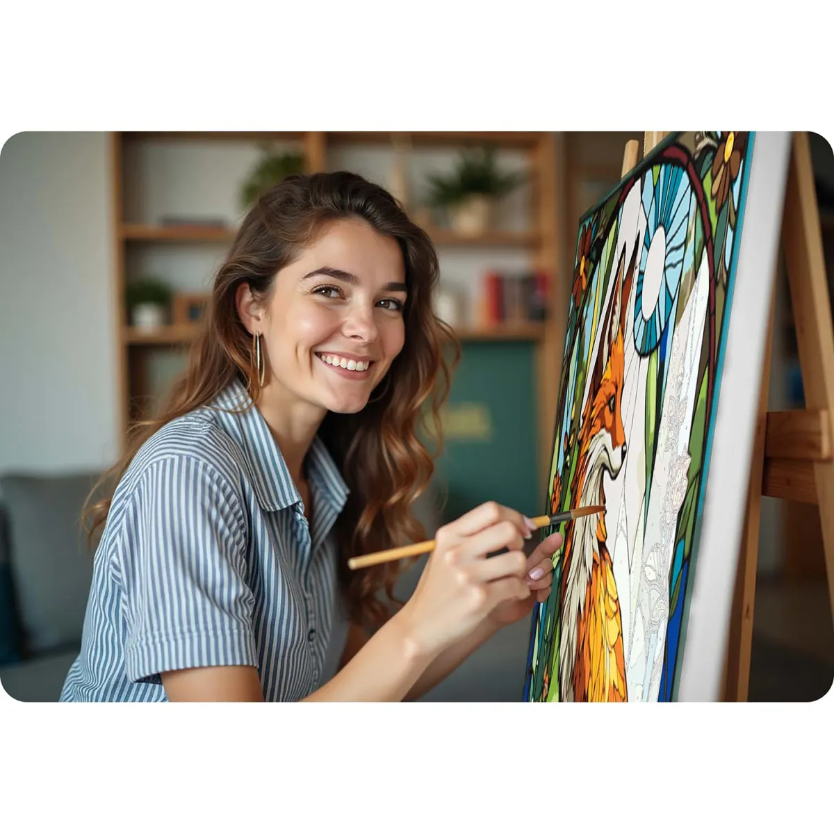Pictură după numere, 40x50cm, vulpe | Massido este un set care vă permite să vă relaxați în timp ce completați căsuțele cu culori și vă creați propria operă de artă. Modelul vesel și colorat este o alegere excelentă atât pentru artiștii mari, cât și pentru cei mici care doresc să descopere bucuria picturii. Ideal pentru a petrece timp creativ cu familia și a crea o operă de artă unică, plină de culori!