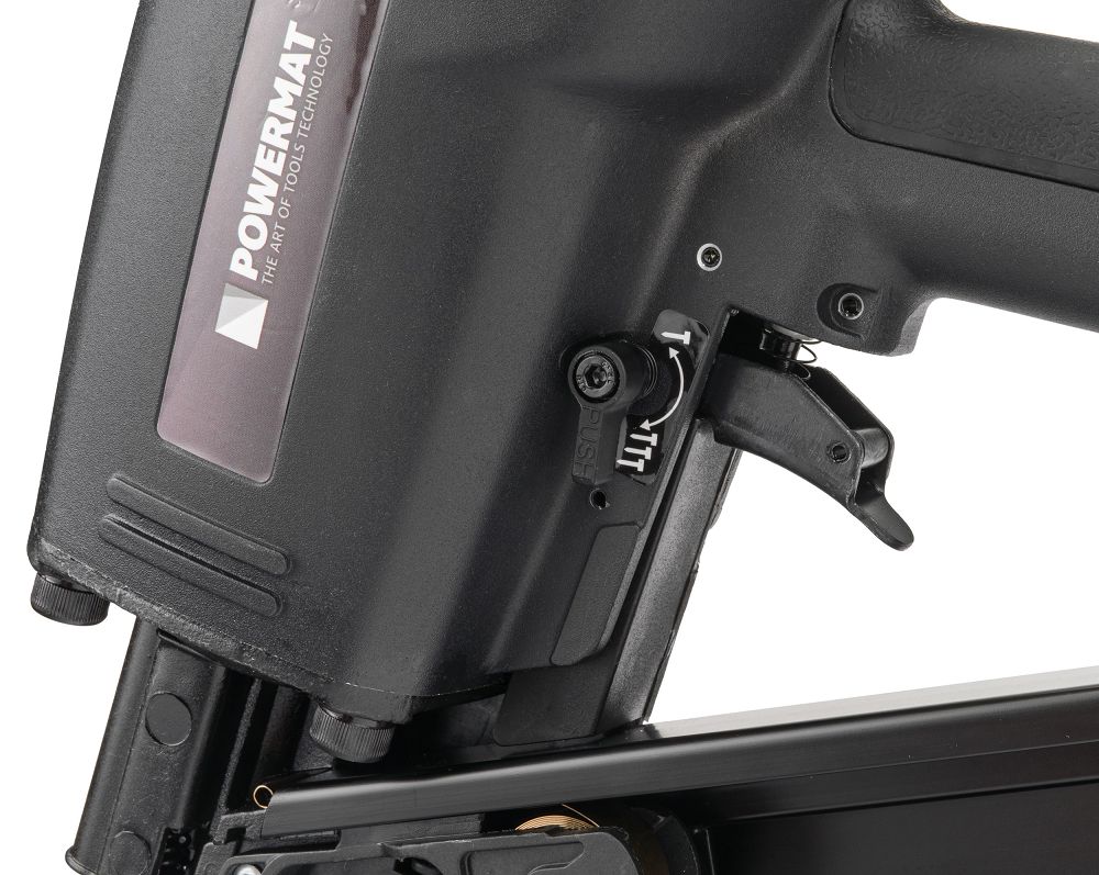 Greutatea de doar aproximativ 3,75 kg asigură o manevrare ușoară a dispozitivului chiar și în timpul lucrărilor mai lungi și în spații înguste. Pistolul de batut cuie are un mecanism care previne declanșarea accidentală, un mâner ergonomic pentru un control mai bun și posibilitatea de a comuta între modurile de lucru individuale și seriale. Datorită acestor caracteristici, este un instrument fiabil pentru lucrări de tâmplărie, asamblare și construcții, unde este necesară o fixare rapidă, precisă și durabilă a elementelor din lemn sau structurale.