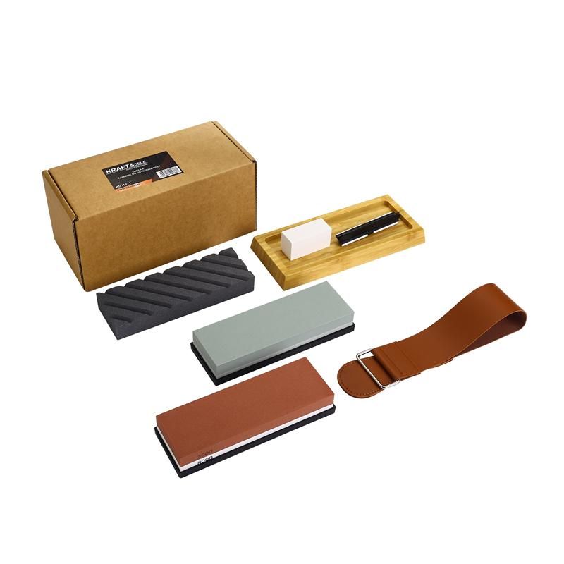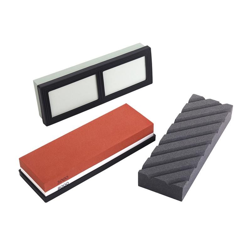 - Setul include pietre de diferite granulații pentru ascuțirea inițială și finală