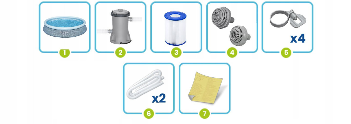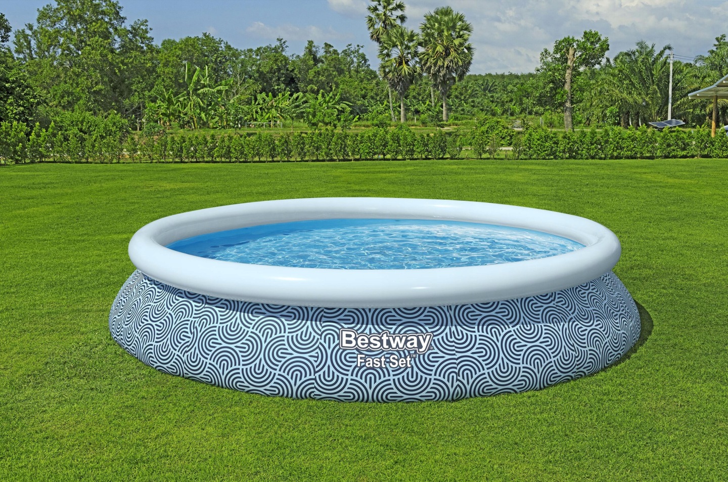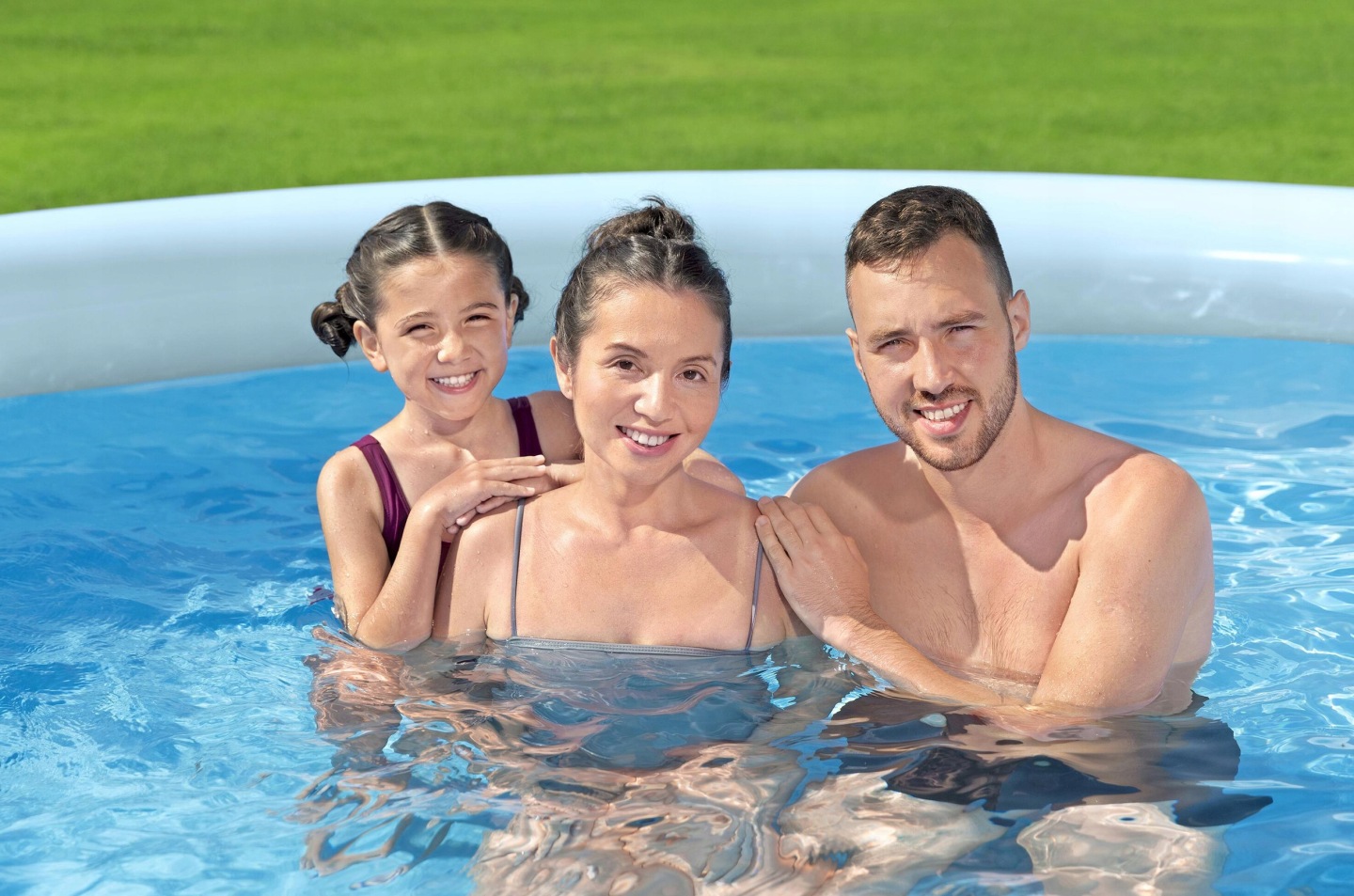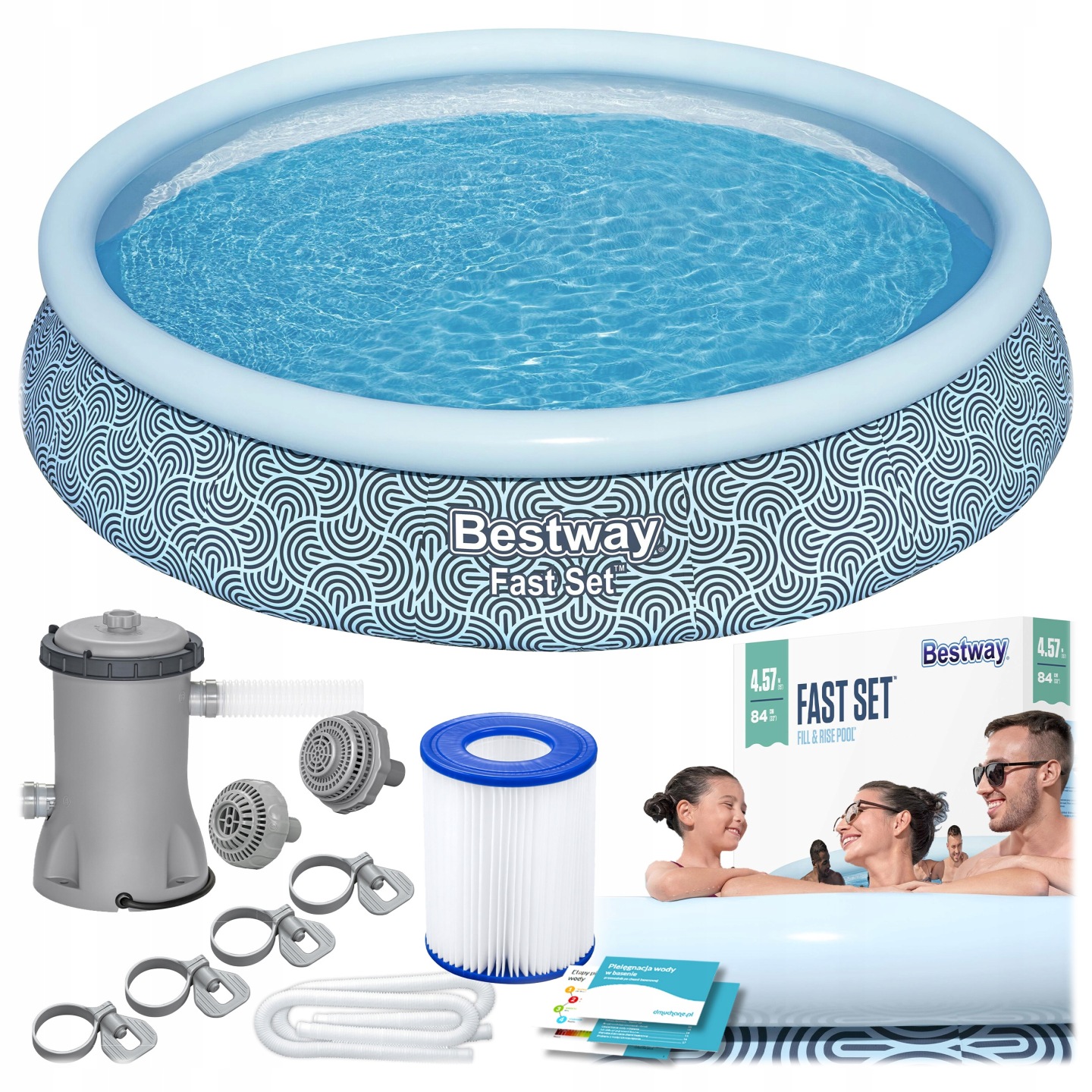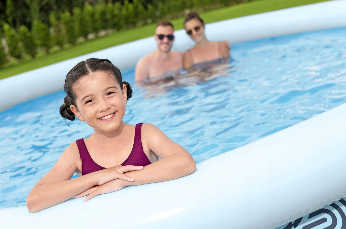 Piscină de grădină cu accesorii 7în1 57313NN, 457x84cm | Bestway oferă o soluție simplă pentru răcoritoare și distracție de vară pentru întreaga familie chiar în grădină. Construcția sa autoportantă permite o instalare ușoară fără unelte. Trebuie doar să umflați inelul superior și să îl umpleți cu apă, datorită căruia piscina se ridică automat și este gata de utilizare.