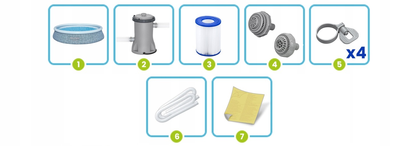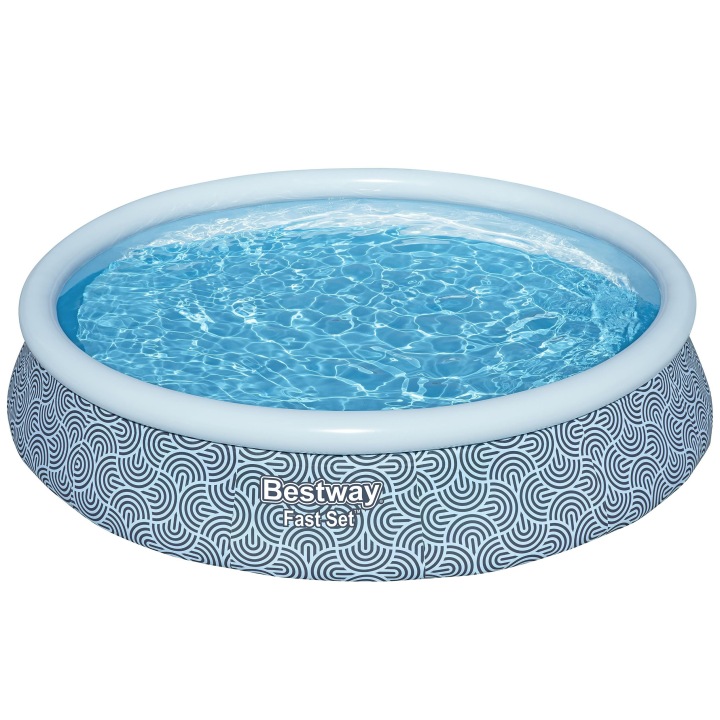 Piscină de grădină cu accesorii 7în1 57376N, 396x84cm | Bestway oferă o soluție simplă pentru răcoritoare și distracție de vară pentru întreaga familie chiar în grădină. Construcția sa autoportantă permite o instalare ușoară fără unelte. Trebuie doar să umflați inelul superior și să îl umpleți cu apă, datorită căruia piscina se ridică automat și este gata de utilizare.