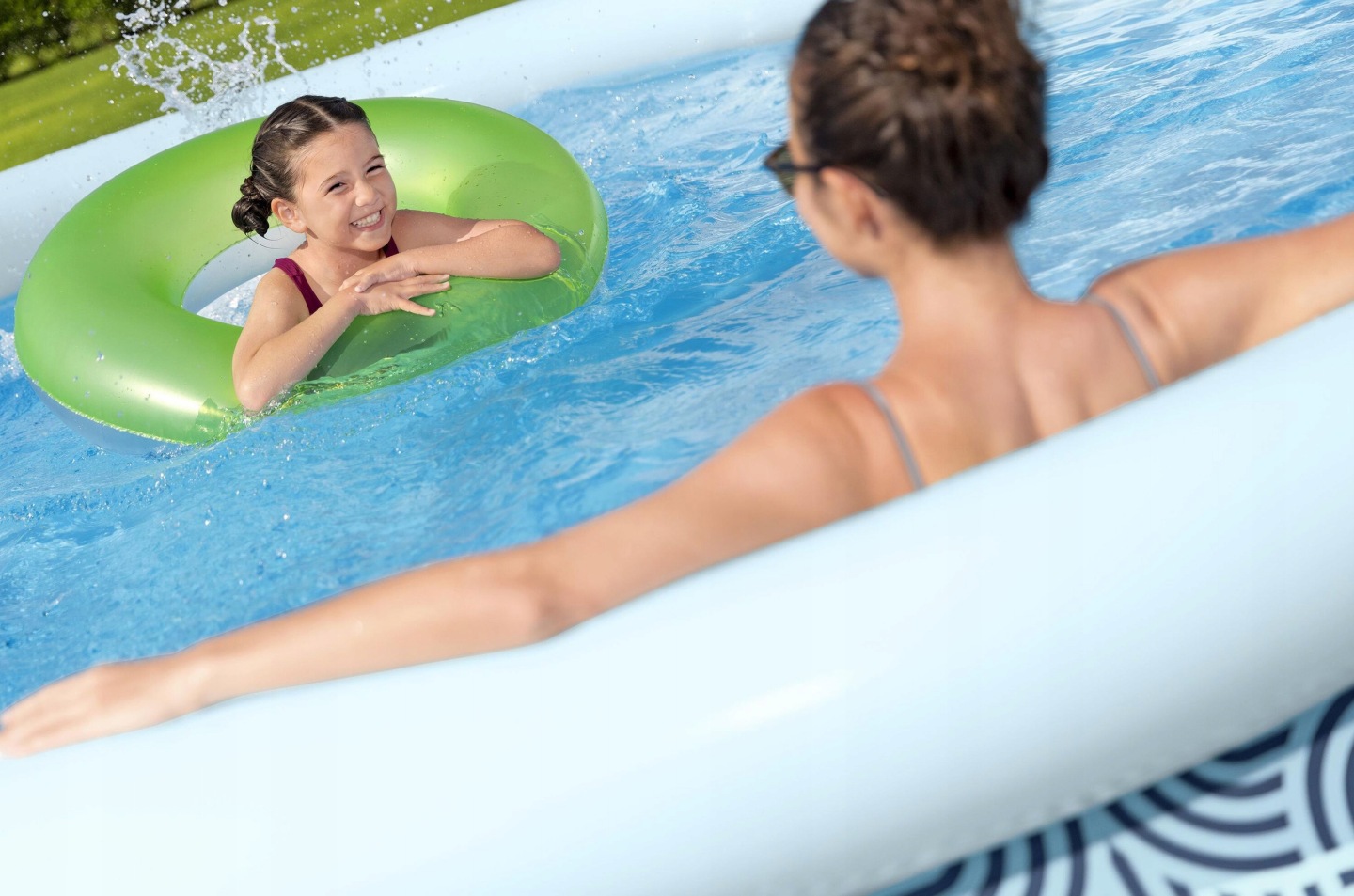 Pereții rezistenți din trei straturi, din material PVC, asigură rezistență și o durată de viață mai lungă chiar și în cazul utilizării regulate, în timp ce volumul de aproximativ 7.340 de litri oferă suficient spațiu pentru înot pentru întreaga familie. Pachetul include o pompă de filtrare și accesorii care ajută la menținerea apei curate, în timp ce supapa de scurgere integrată permite scurgerea ușoară a apei după sezon. Astfel, piscina oferă o soluție convenabilă și nepretențioasă pentru distracția de vară chiar în grădină.
