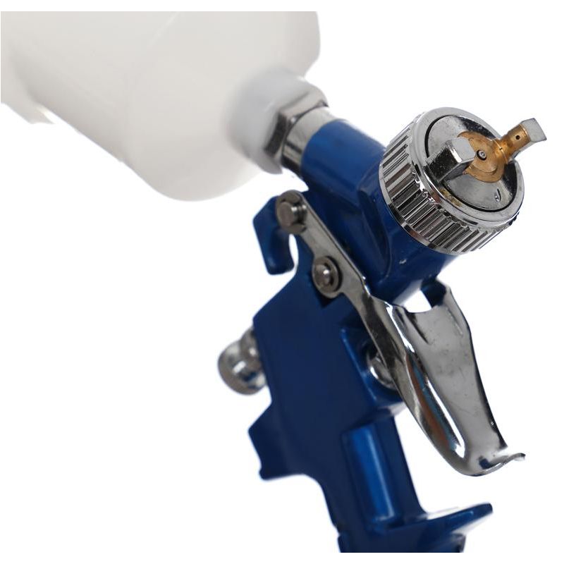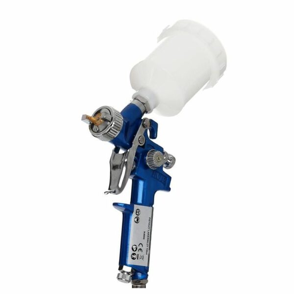 Este ideal pentru lucrări detaliate, cum ar fi vopsirea mobilei, reparații de caroserie, proiecte decorative sau modelism. Designul ergonomic permite o prindere confortabilă chiar și în timpul lucrărilor mai lungi, iar reglarea vopselei și a fluxului de aer oferă control complet asupra rezultatului. Datorită preciziei și fiabilității sale, va fi apreciat atât de meșterii amatori, cât și de profesioniștii care caută un instrument de vopsit de înaltă calitate și compact. Pistolul are două butoane care vă permit să reglați funcționarea acestuia în două planuri.
