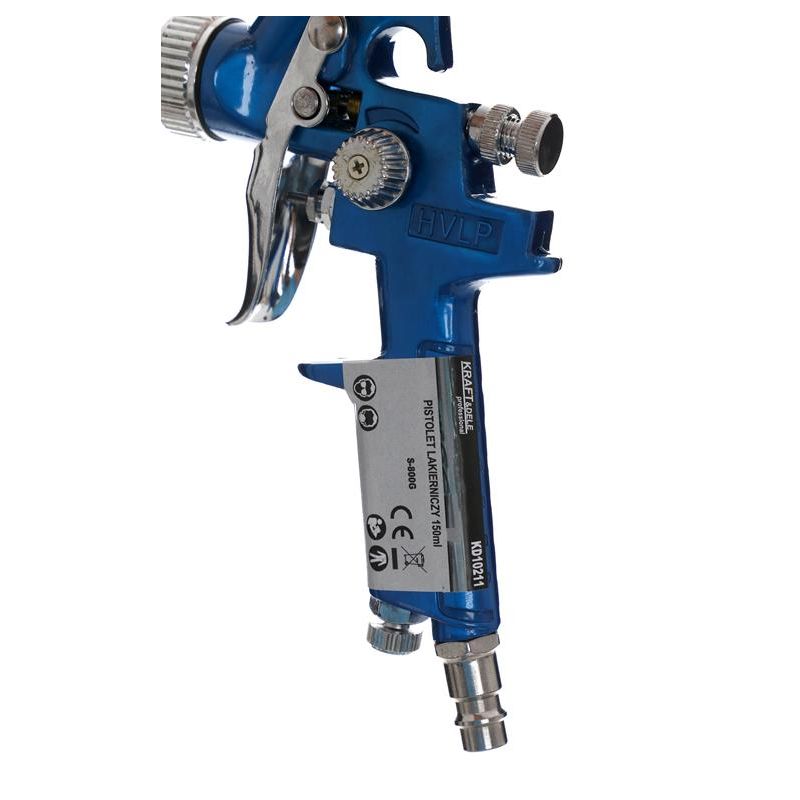 Pistolul de pulverizare, 150ml | KD10211 este un instrument practic și ușor de utilizat, conceput pentru aplicarea precisă a vopselelor, lacurilor și altor tratamente de suprafață. Este potrivit pentru vopsirea suprafețelor cu vopsele pe bază de apă, grunduri acrilice, chituri, vopsele metalice și sidefate. Datorită duzei fine cu diametrul de 0,8 mm și a unui recipient cu un volum de 150 ml, permite acoperirea uniformă a suprafețelor mai mici, fără risipă inutilă de material.