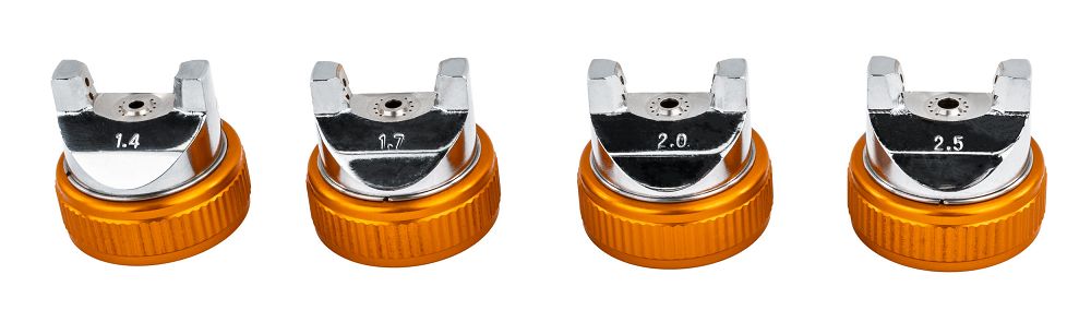 Setul include patru duze cu ac cu diametre de 1,4 mm, 1,7 mm, 2,0 mm și 2,5 mm, care vă permit să adaptați pistoalele de pulverizare la vopsele, grunduri, baițuri și materiale dense și materiale de umplere prin pulverizare. Duzele mai mici asigură o vopsire precisă, în timp ce duzele mai mari permit aplicarea confortabilă a grundurilor, baițurilor și materialelor de umplere prin pulverizare.