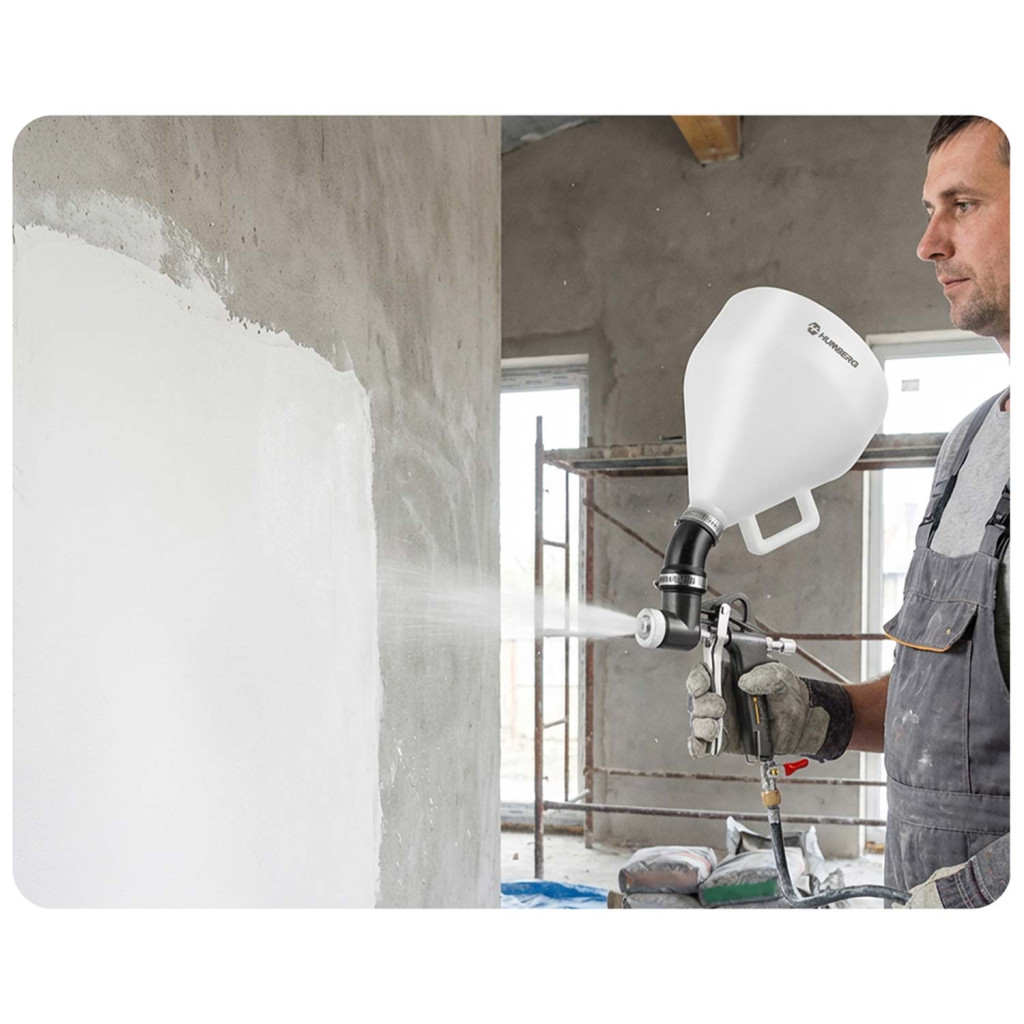 Pistolul pneumatic de vopsit HM-259, 6L | Humberg permite aplicarea rapidă și uniformă a tencuielilor, chiturilor și vopselelor în timpul lucrărilor de construcții. Pistolul funcționează pe principiul aerului comprimat, care asigură o distribuție uniformă a materialului, fără neuniformități inutile. Designul ergonomic și rezervorul practic simplifică manevrarea atunci când se lucrează la pereți și tavane, în timp ce dispozitivul economisește timp la proiecte mai mari. Pachetul include mai multe duze de diferite diametre, care vă permit să prelucrați amestecuri de tencuială fine și grosiere. Datorită acestui fapt, puteți utiliza pistolul pentru diverse lucrări de construcții și finisaje atât în zone interioare, cât și exterioare.