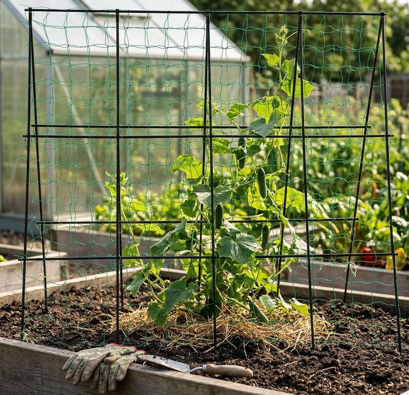 Plasă pentru castraveți cu structură, 1,2×1,2m | Strend Pro este un suport practic pentru cultivarea castraveților și a altor plante cățărătoare. Asigură o mai bună aerare a plantelor, o recoltare mai ușoară și fructe mai curate, fără contact cu solul. Rama solidă, în combinație cu plasa, permite plantelor să crească vertical, ceea ce economisește spațiu, îmbunătățește accesul la fructe și promovează o creștere sănătoasă.
