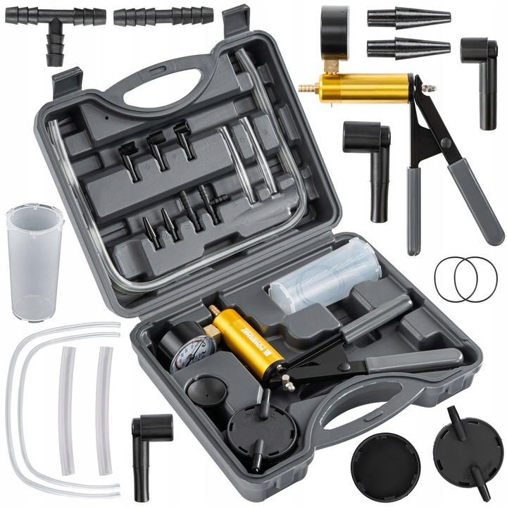 Pompa de vid manuală, set de 18 piese | PM-PPC-120T vă permite să verificați rapid și precis sistemele de vid la motoarele pe benzină sau diesel. Puteți diagnostica frânele, EGR-ul sau furtunurile fără unelte suplimentare, economisind timp și evitând înlocuiri costisitoare și inutile. Carcasa portabilă practică conține cabluri, conectori, dopuri și un recipient. Deschideți-o și puneți-vă la treabă – economisind timp și bani pe accesorii suplimentare.