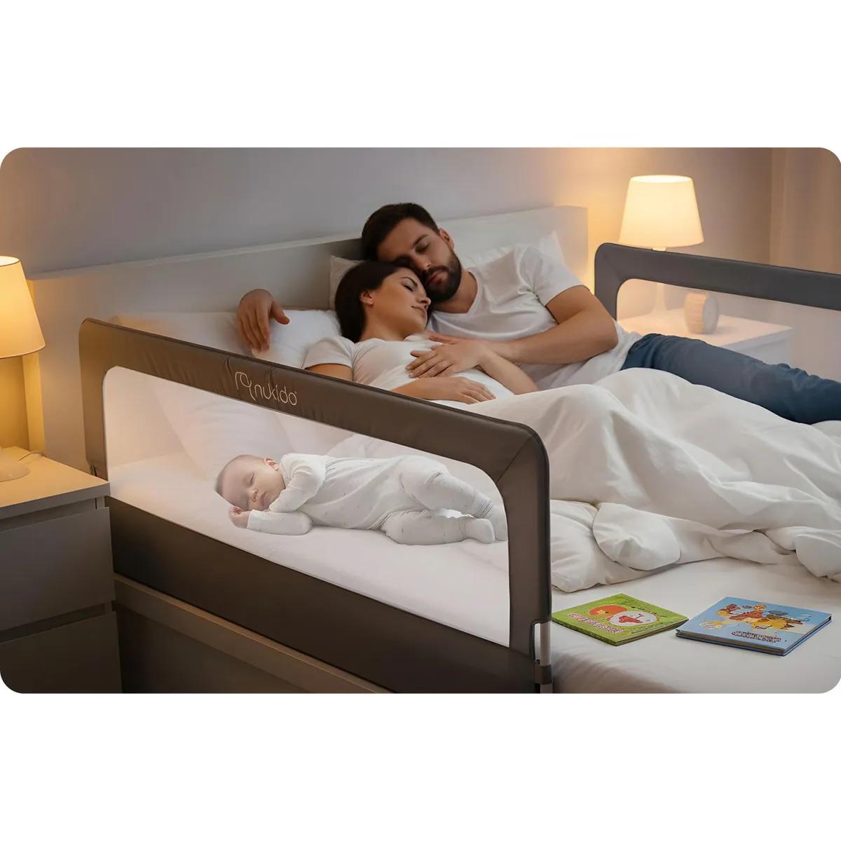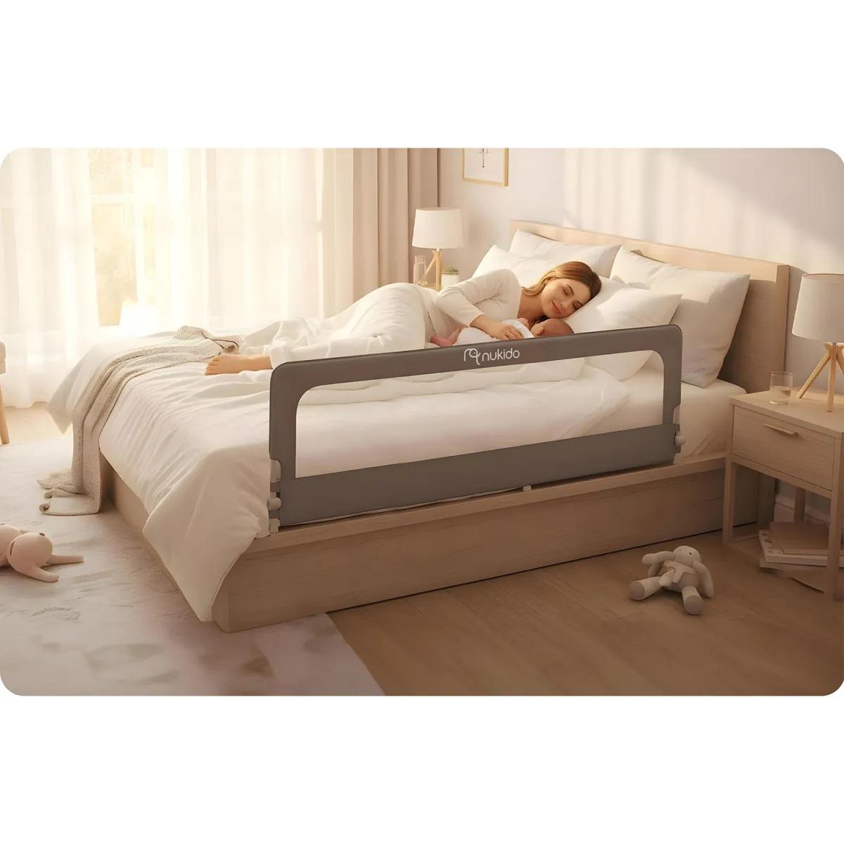 Protej pat NK-228, 180cm, gri | Nukido protejează eficient împotriva căderilor, îi oferă copilului libertate și ție siguranța că este în siguranță. Designul pune accent pe stabilitate și montaj ușor – protecția este fixată ferm pe cadrul patului fără a fi nevoie de unelte complexe, iar materialele durabile asigură utilizarea pe termen lung.