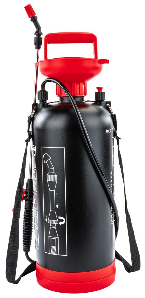 Dispune de un rezervor de înaltă calitate, de 8 litri, echipat cu o bază stabilă și un gura de scurgere largă pentru o turnare ușoară, fără vărsare. Pompa manuală vă permite să acumulați rapid presiunea de lucru, în timp ce supapa de siguranță protejează împotriva presiunii excesive și permite eliberarea sigură a aerului. Duza de precizie permite o tranziție lină între o ceață fină și un jet concentrat, adaptând astfel pulverizarea la tipul de utilizare.