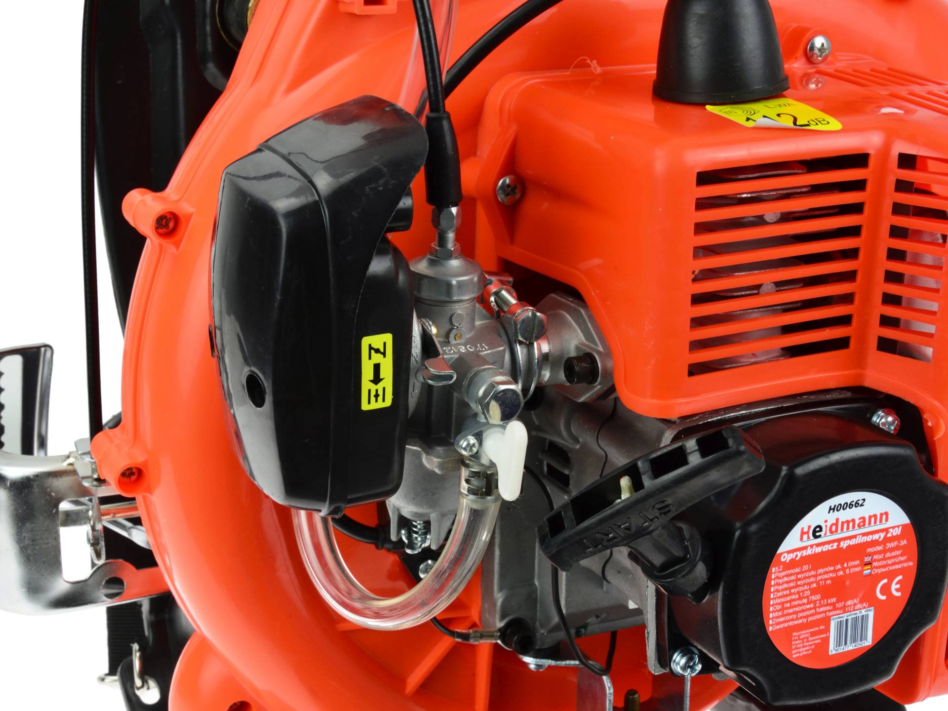 Pulverizator pe benzină, 20L | Heidmann cu rezervor mare pentru aplicarea eficientă a lichidelor și granulelor în agricultură, grădini și păduri. Motorul său fiabil, silențios, puternic și eficient este ideal pentru pulverizarea sau împrăștierea îngrășămintelor. Componentele sunt de înaltă calitate, datorită cărora motorul nu provoacă vibrații excesive. Capacitatea de pulverizare este de aproximativ 4 litri de lichid pe minut de funcționare. Întregul dispozitiv este montat pe plăcuțe moi de cauciuc, astfel încât veți simți cu greu vibrații.