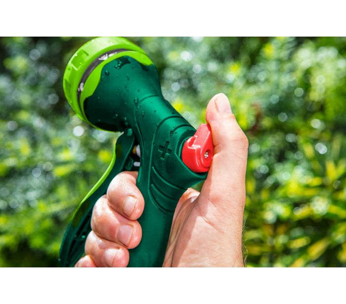 Pistolul de pulverizare VERTO este dotat cu funcția de reglare a debitului de apă, ceea ce vă permite să adaptați performanța acestuia la activitatea desfășurată. Marcajele clare facilitează alegerea tipului potrivit de duză. Pistolul are o blocare a pârghiei din față, datorită căruia poate funcționa în modul continuu. Mânerul cu formă ergonomică se potrivește bine în mână și nu alunecă, ceea ce mărește confortul de lucru.