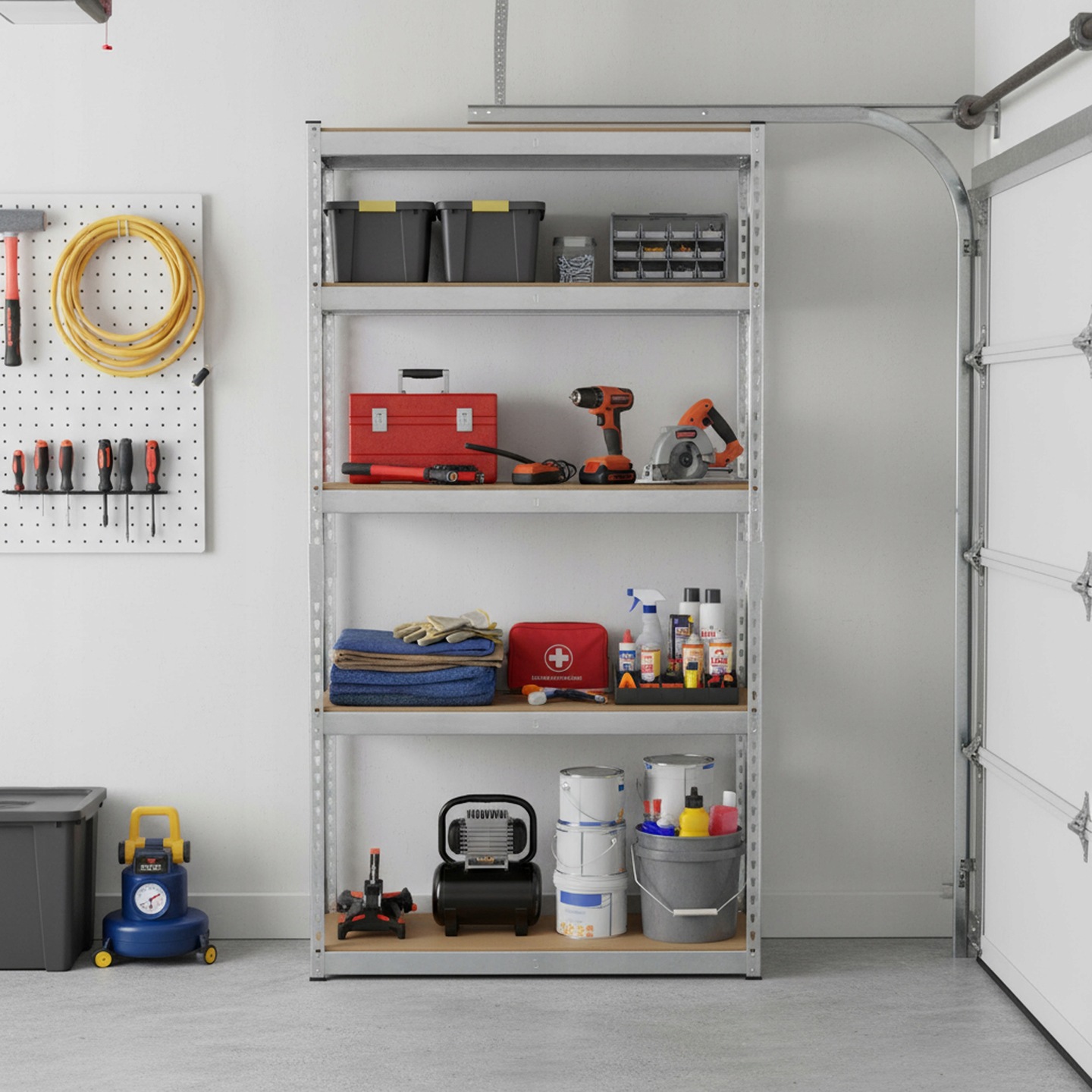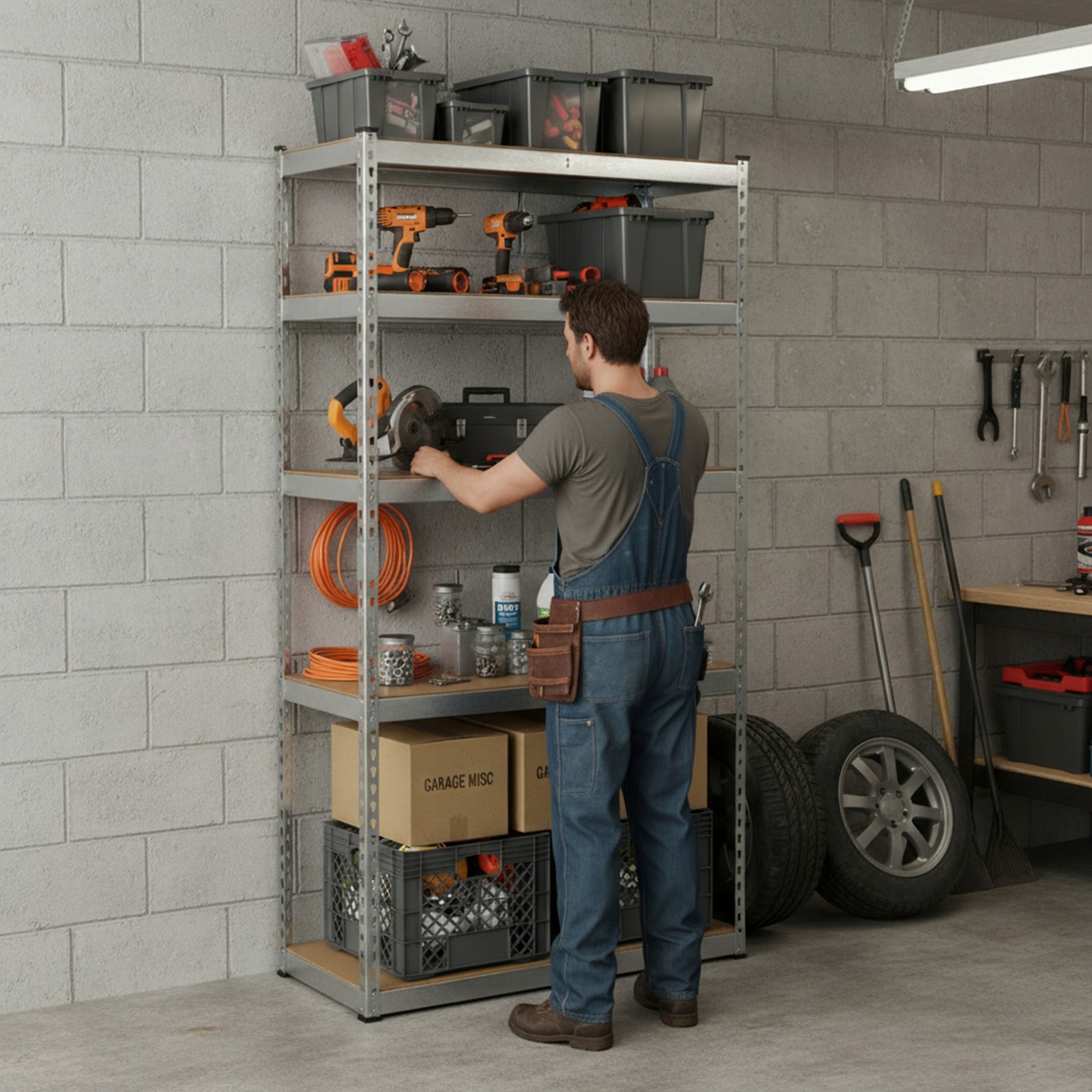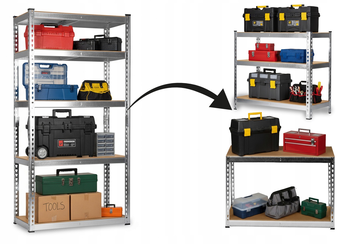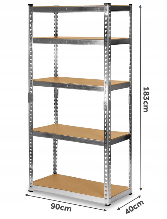 Ocupă puțin spațiu, dar datorită rafturilor sale oferă mult spațiu de depozitare. Raftul este format din 5 rafturi pe care puteți așeza produse, cutii sau echipamente cu o sarcină maximă de 265 kg pe raft. Un alt avantaj al acestui raft este că poate fi împărțit în două unități mai mici.