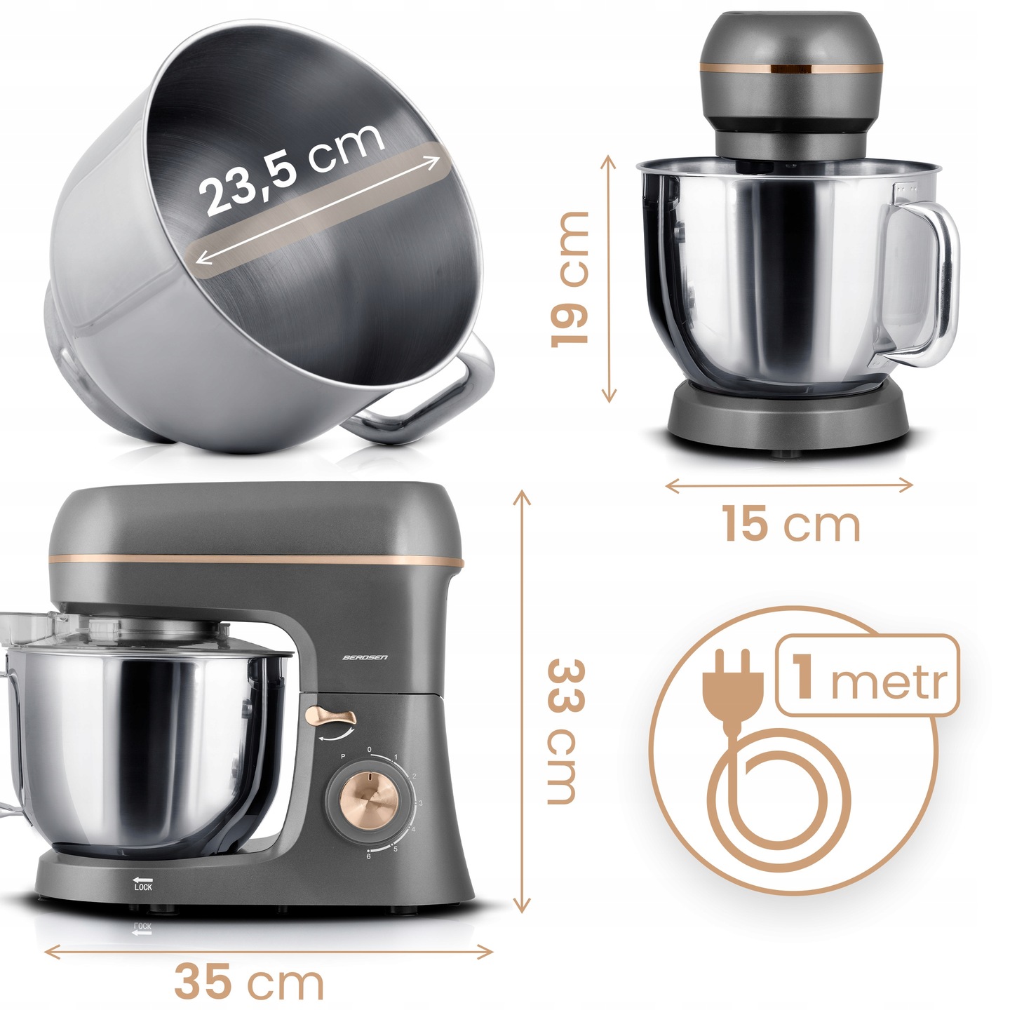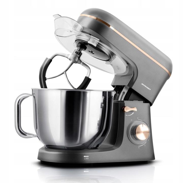 Roboter de bucătărie planetar BD-756 3în1, 6L, 1400W | Berdsen echipat cu un motor din cupru, prelucrează cu ușurință chiar și cele mai dificile aluaturi, garantează stabilitate și fiabilitate. Datorită sistemului său de angrenaje complet metalice, acesta depășește modelele cu angrenaje din plastic în ceea ce privește durabilitatea și rezistența la uzură, ceea ce îl face o investiție pentru mulți ani.